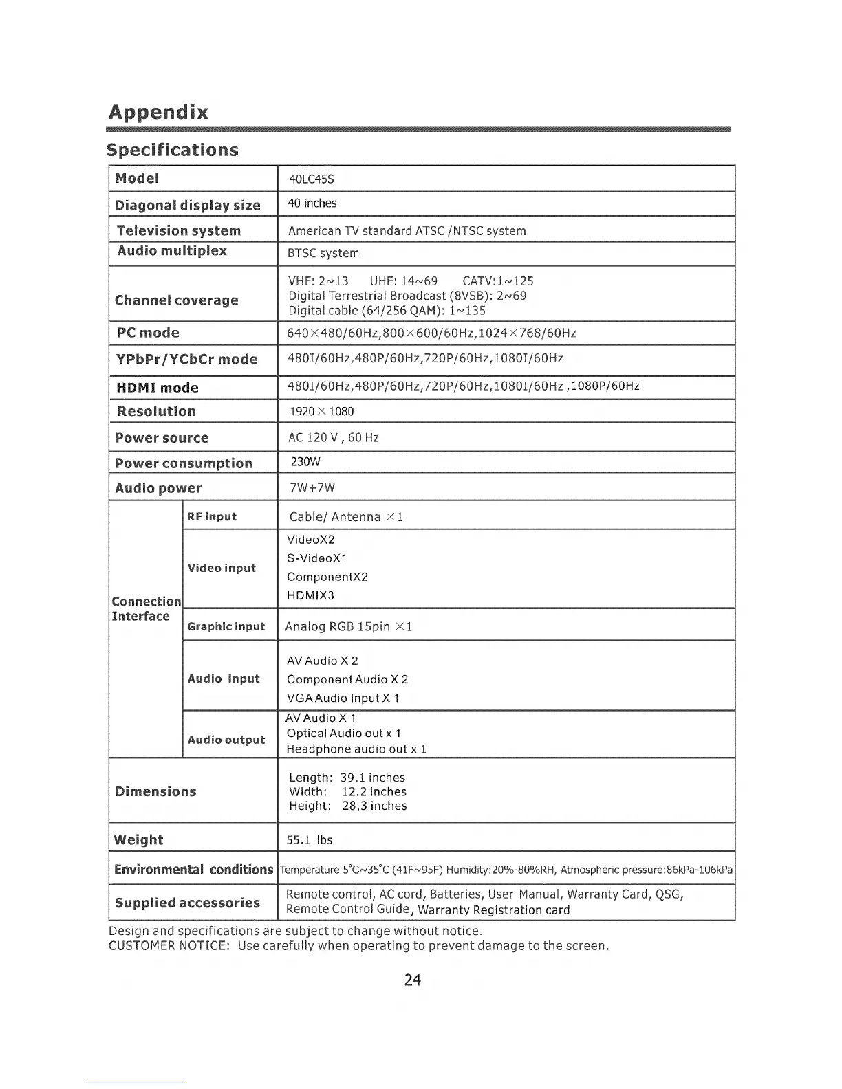 4801/60H z,480 P/60 Hz,720P/60Hz, 10801/60 Hz, 1080 P/60Hz
