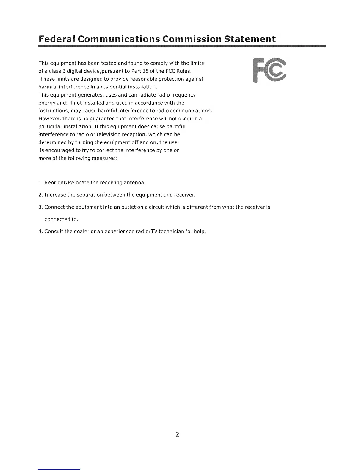 2. Increase the separation between the equipment and receiver.