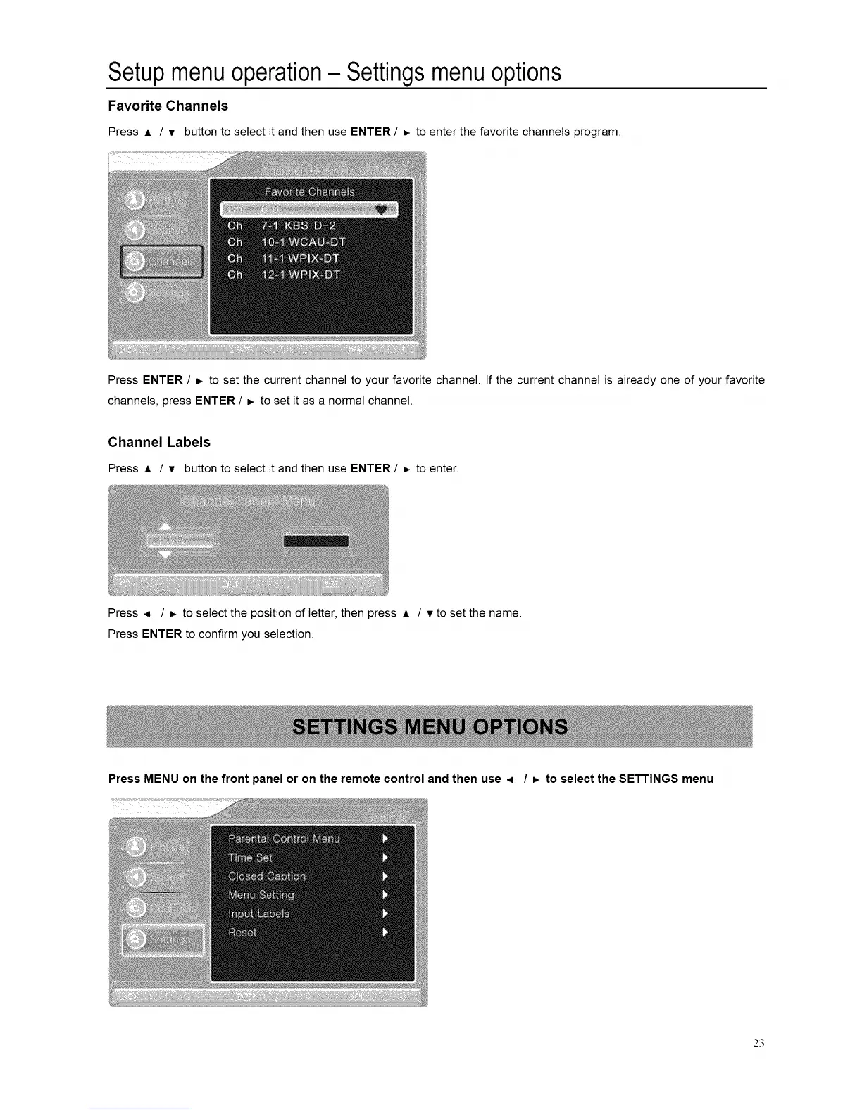 Setupmenuoperation- Settingsmenuoptions