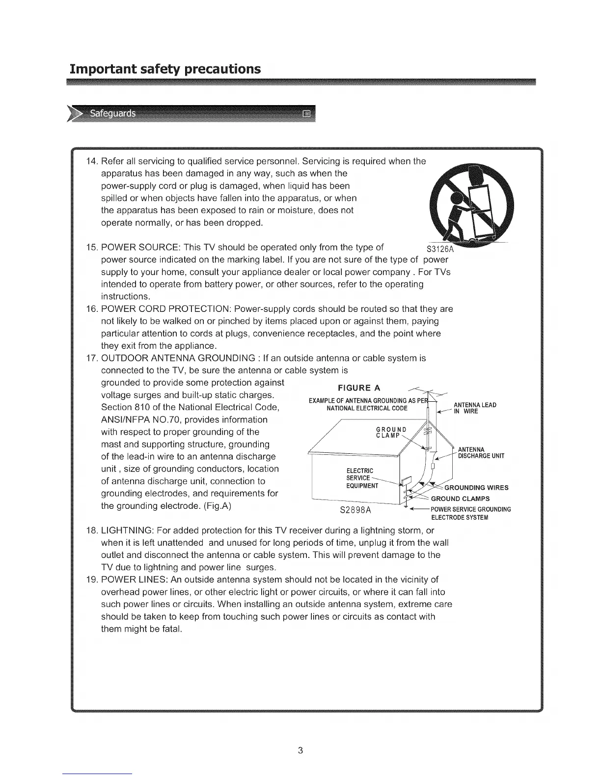 POWER SOURCE: This TV should be operated only from the type of S3126A
