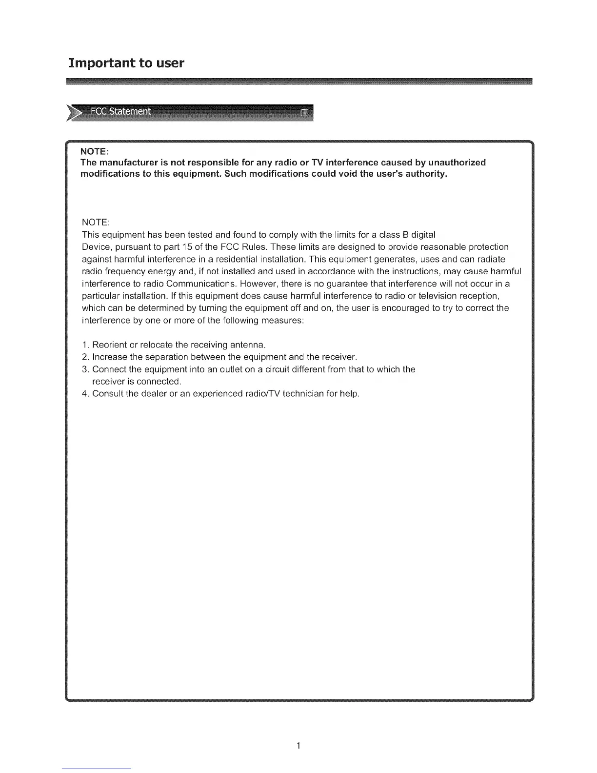 The manufacturer is not responsible for any radio or TV interference caused by unauthorized