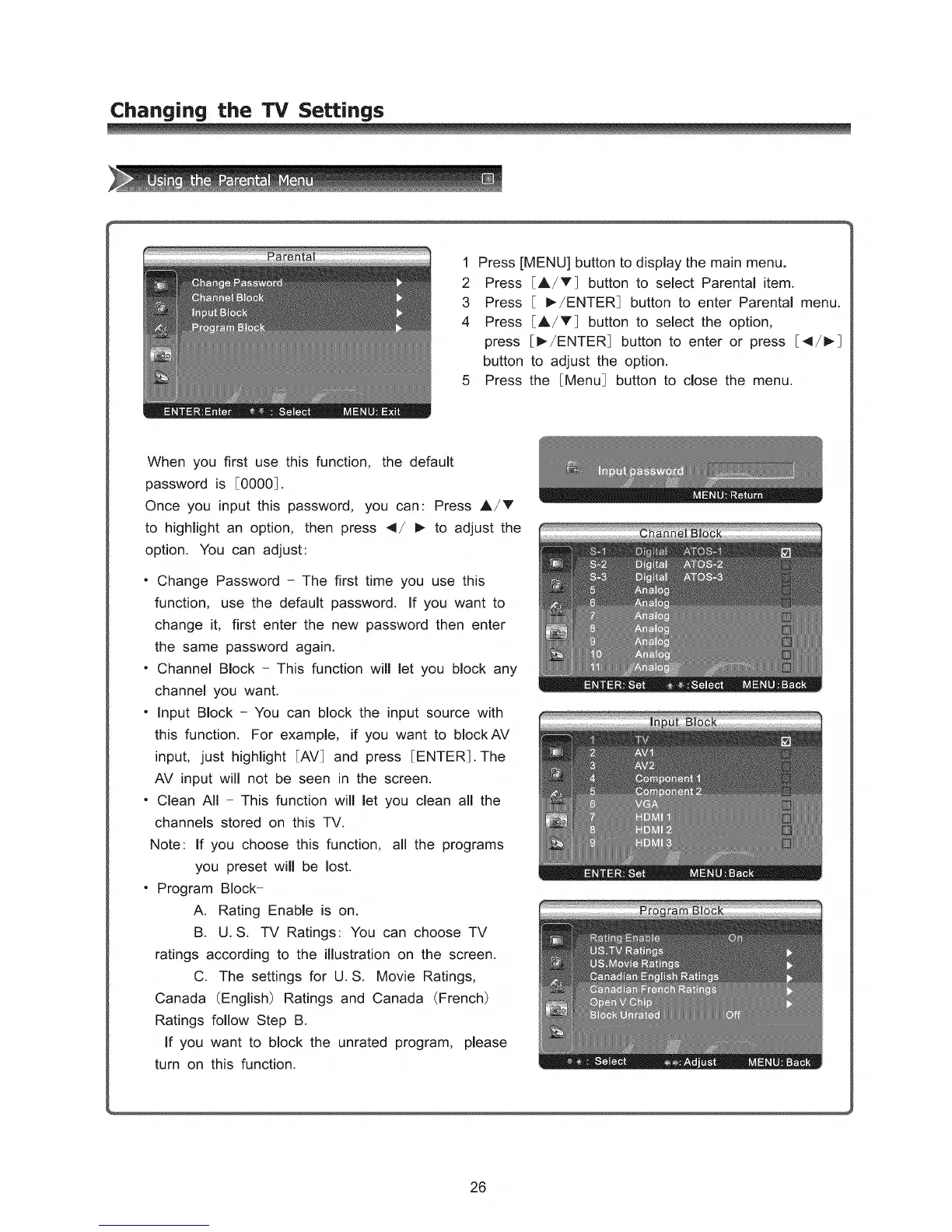 3 Press C IP,/ENTER] button to enter Parental menu.