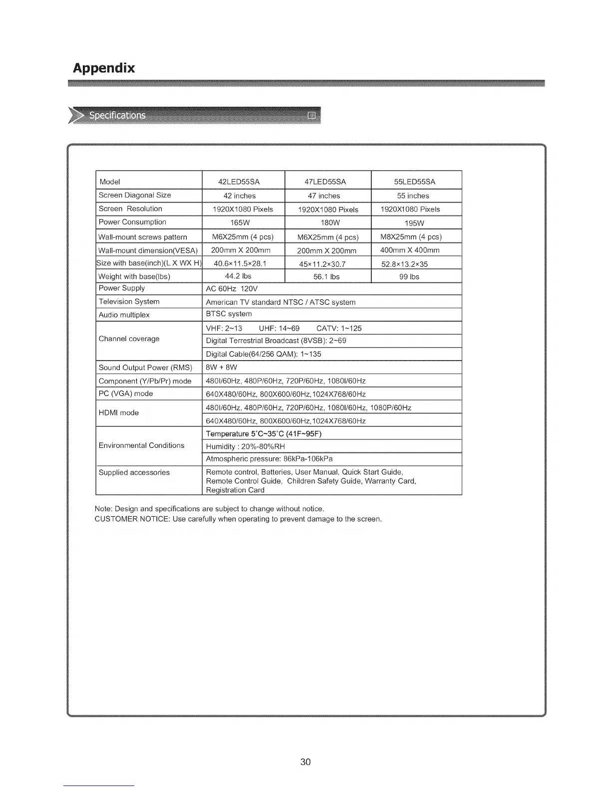 Screen Diagonal Size 42 inches 47 inches 55 inches