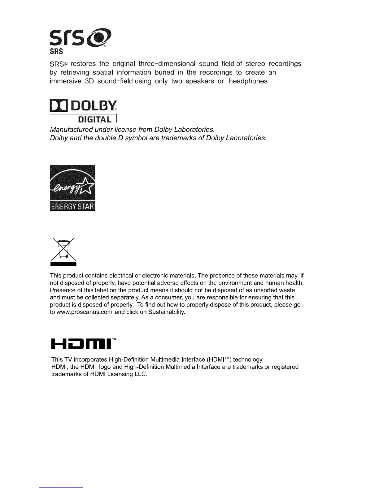 Dolby and the double D symbol are trademarks of Dolby Laboratories.