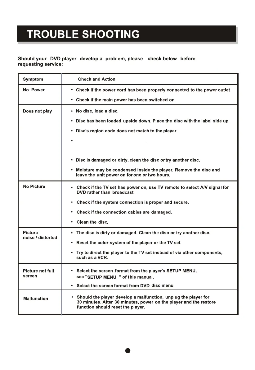ProScan Elite PEDVD6657-EO - Trouble Shooting; No Power Issues; Playback Problems; Picture and Display Issues
