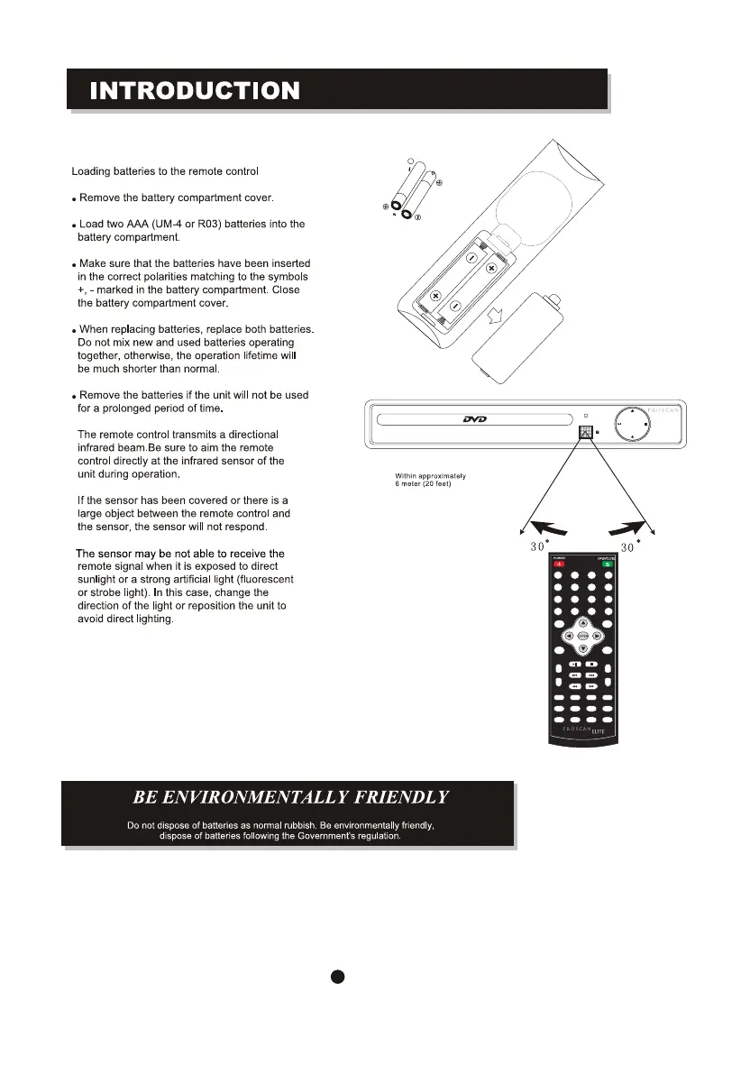 ProScan Elite PEDVD6657-EO - Introduction; Loading Batteries to the Remote Control; Remote Control Operation