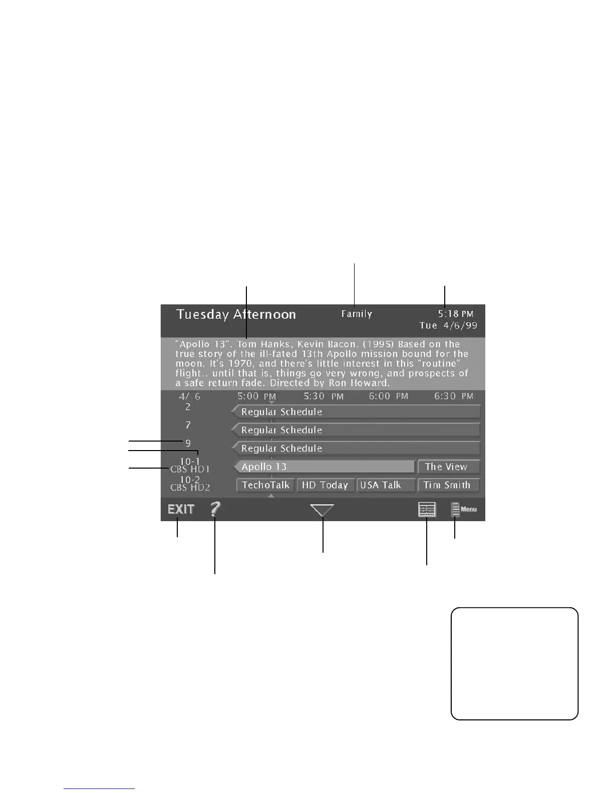 2. Press GUIDE on the remote control. The following diagram shows you the kind of