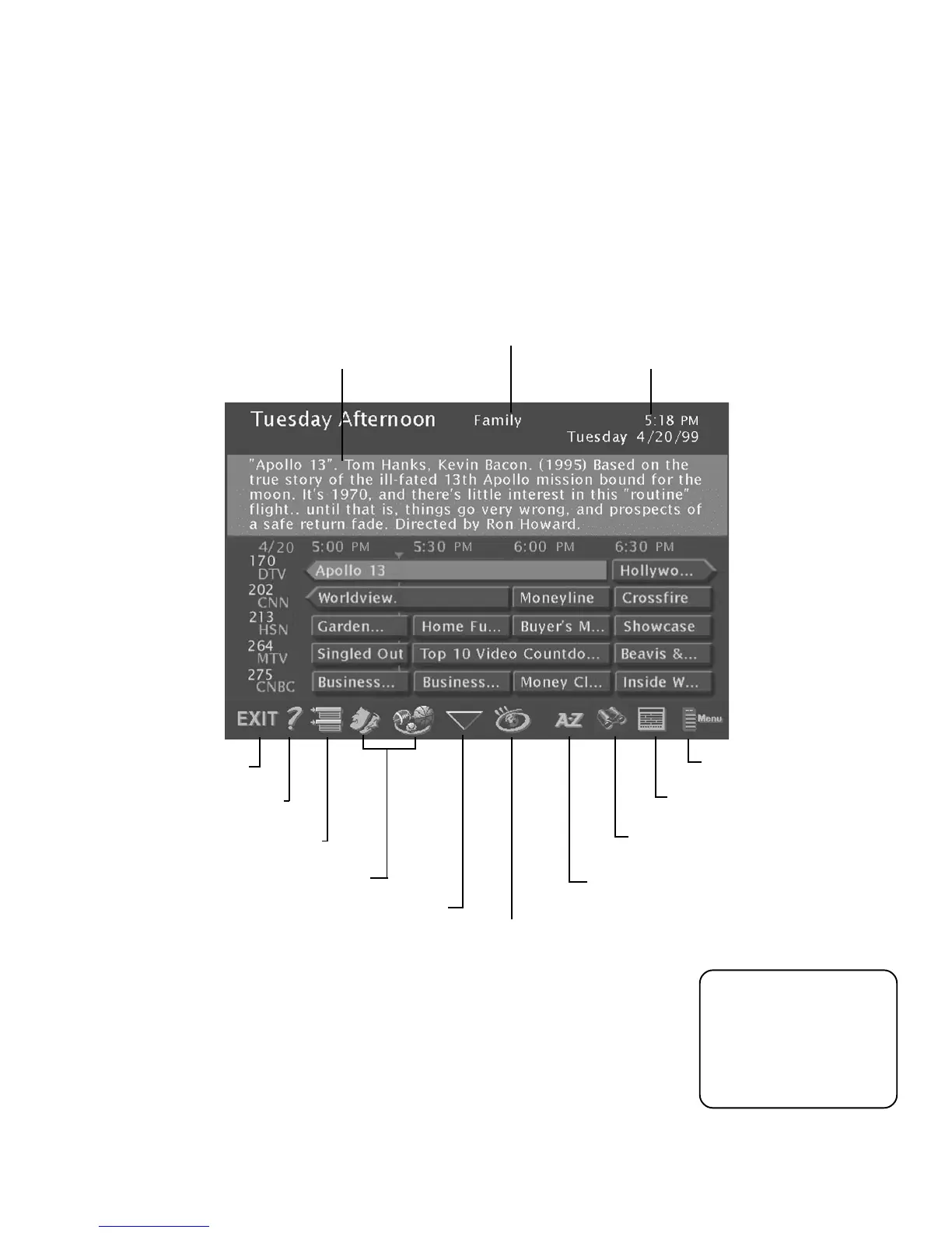 diagram shows you the kind of information you will see in the DIRECTV