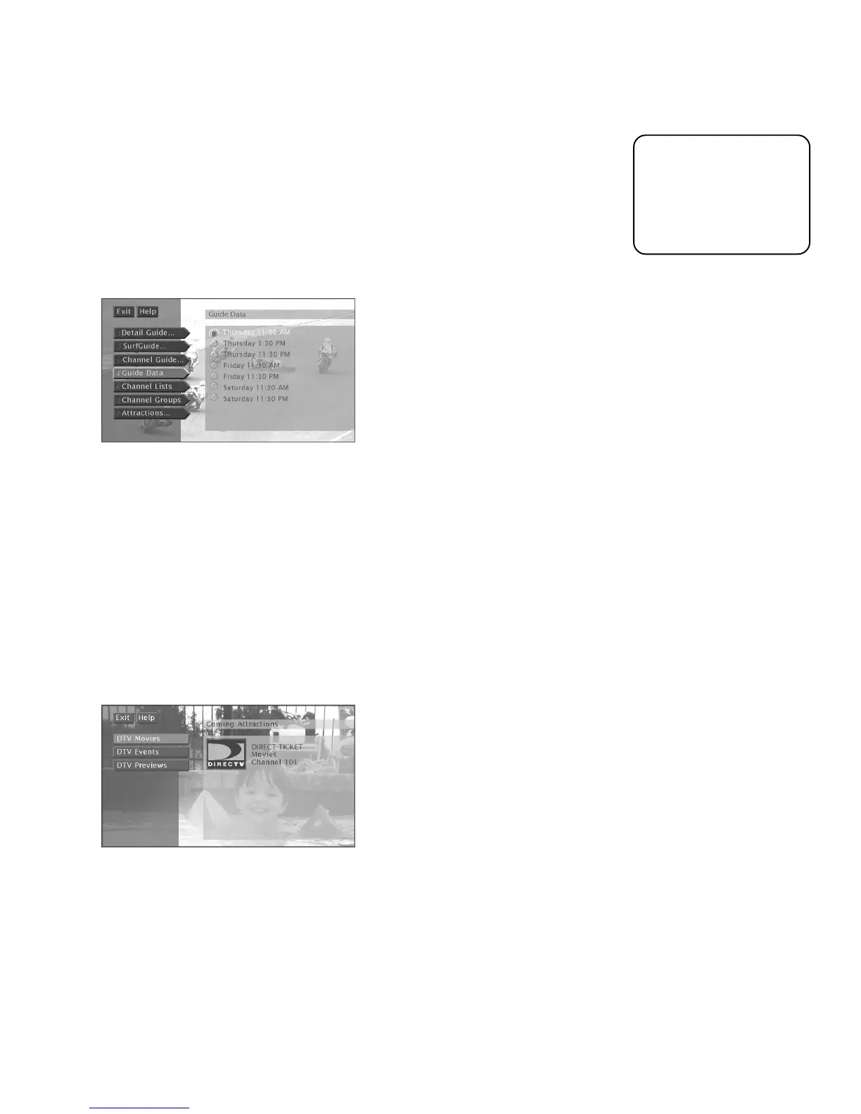 • Attractions… Displays a list of DIRECTV