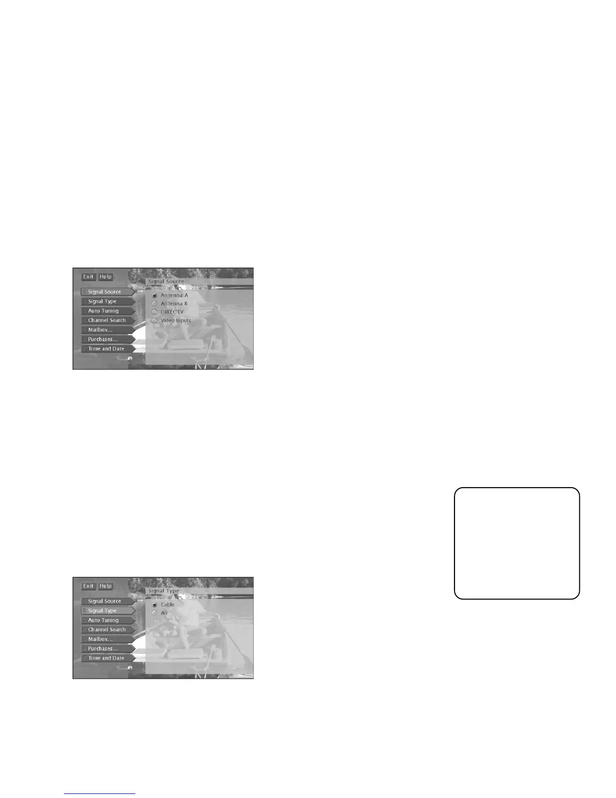cable TV or an off-air antenna. When you run Channel Search (see “Channel