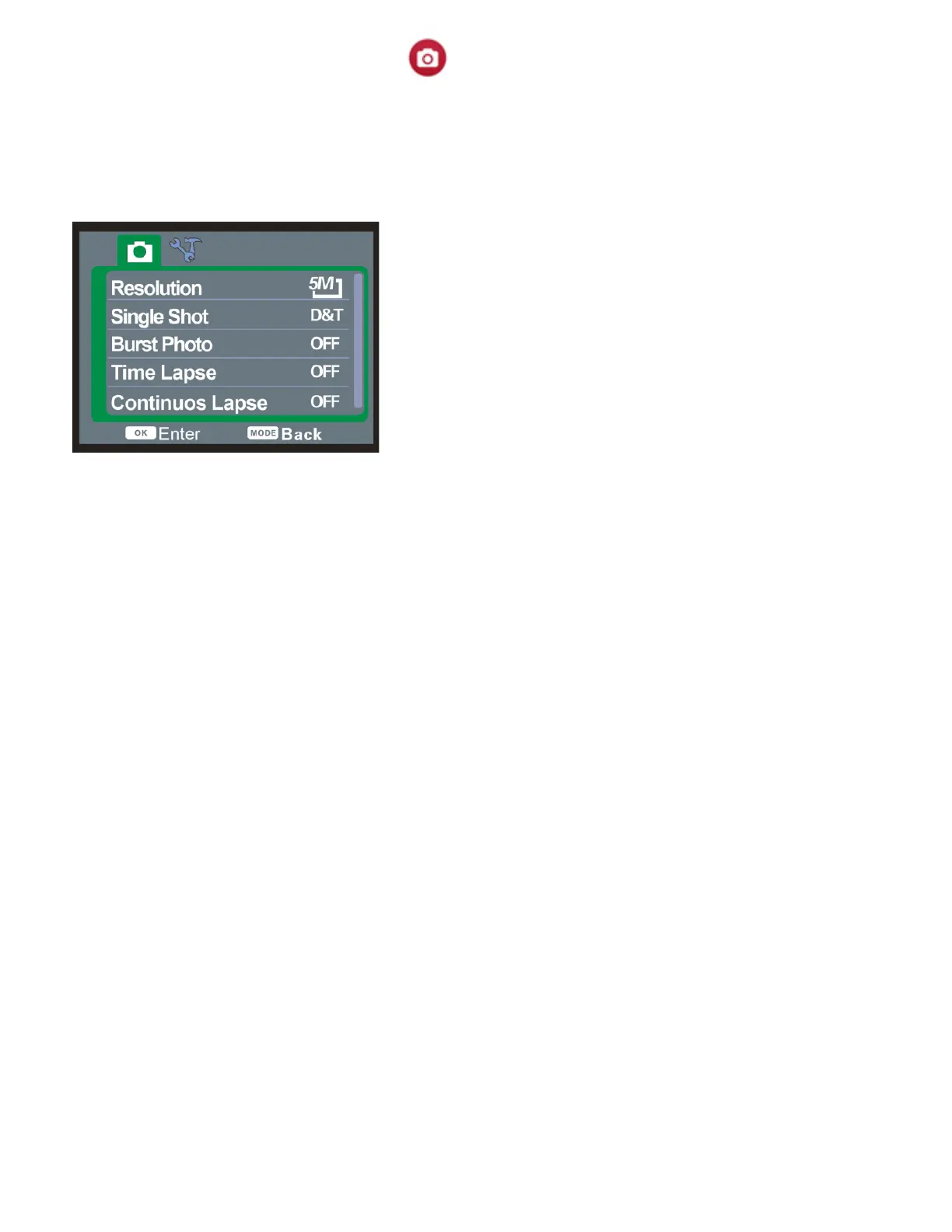 appuyez sur OK pour choisir la r ésolution et la sortie (3MP interpolés, 5MP