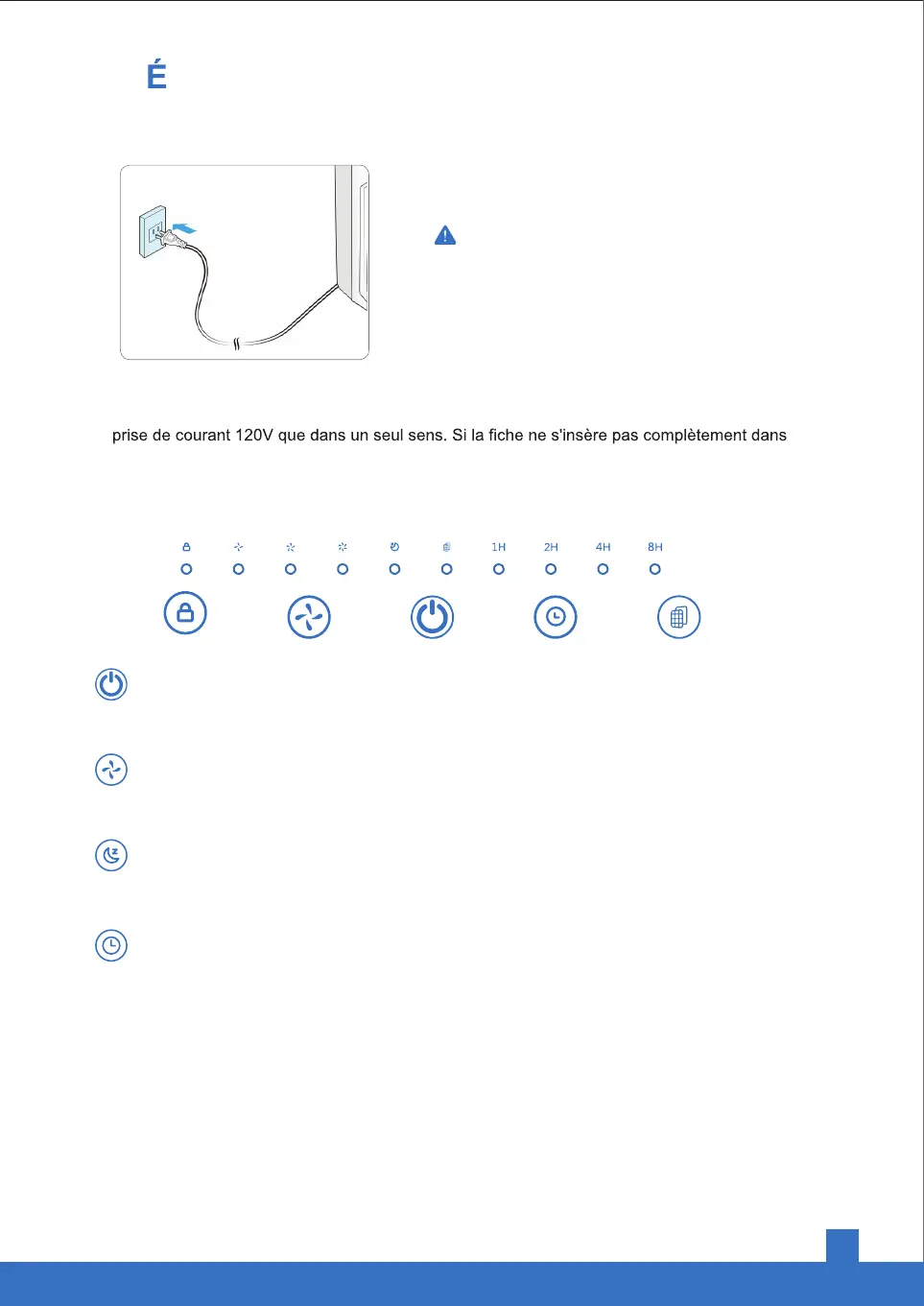 • Une fois le purificateur d'air branché, vous pouvez appuyer sur ce bouton pour allumer le