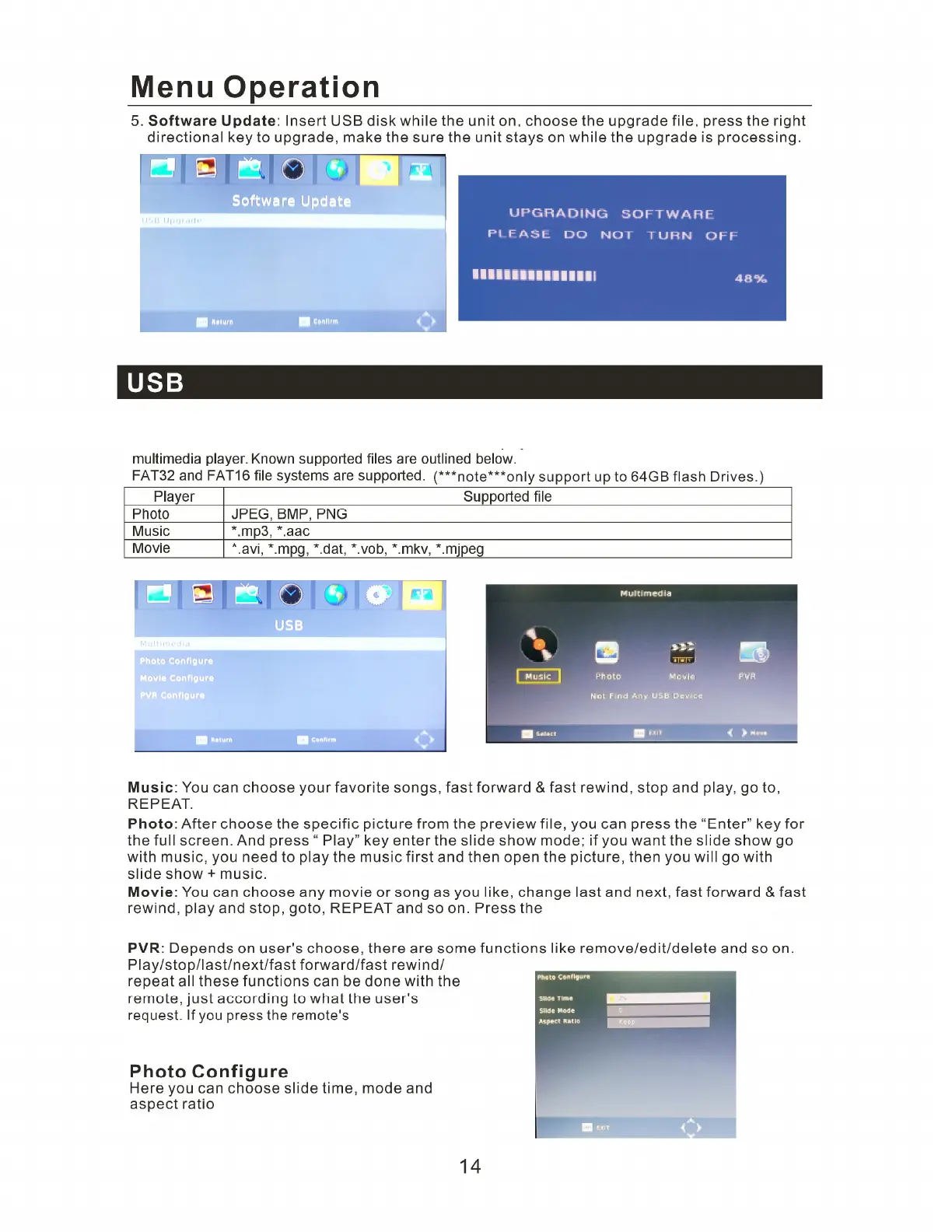 You can now select to view Photos, play MP3 music files and view Movie files via the