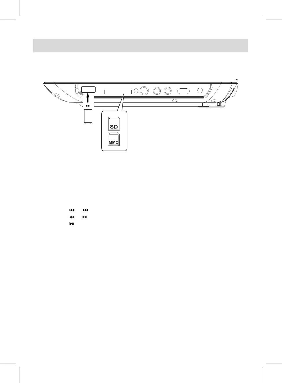 1. Insert the USB Device or SD/MMC memory card into the USB port /card slot as the figure below.