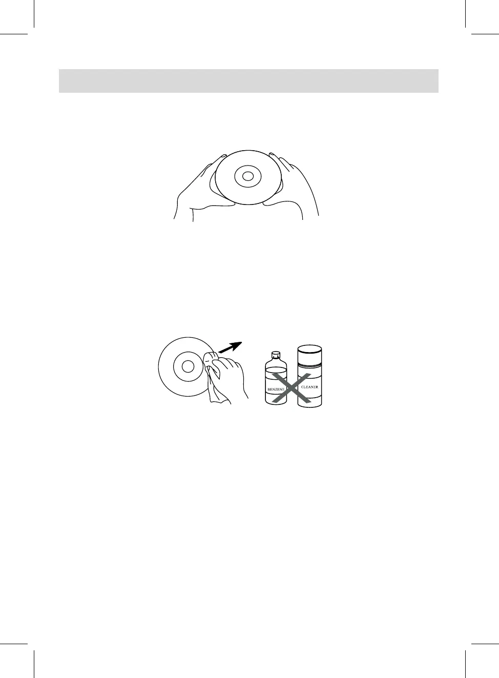 Never allow your fingers to contact with the shin , unprinted side of the disc.