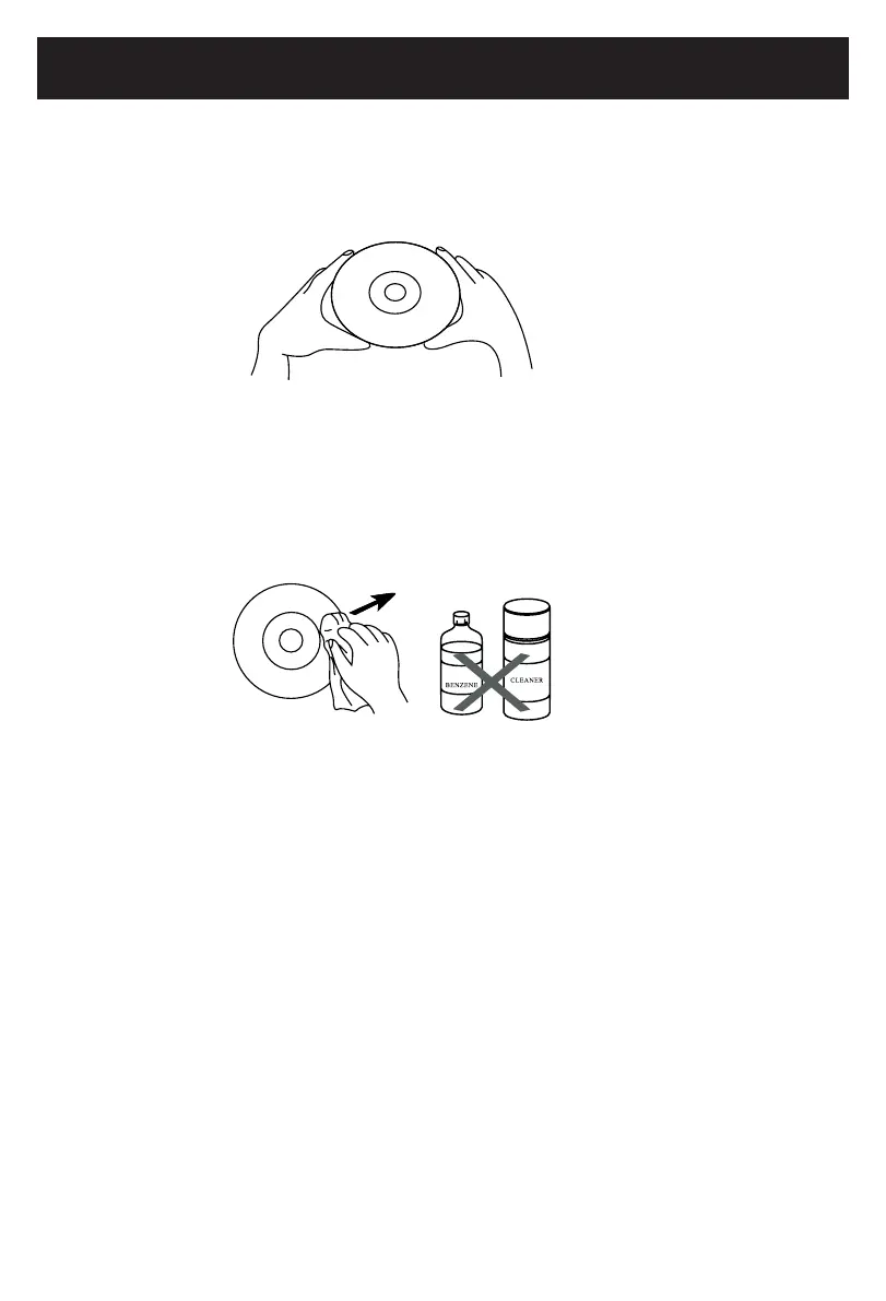 • Whencleaningthedisc,wipeinstraightlinesfromthecenterofthedisctotheouter