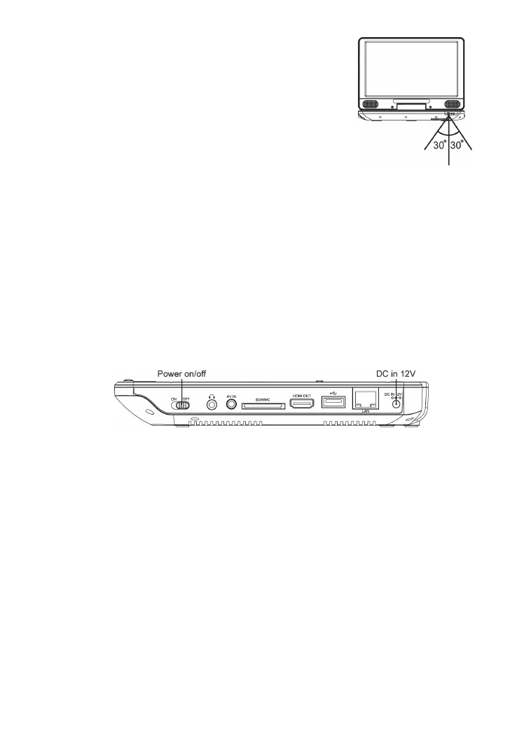 Le panneau de l'écran du lecteur DVD portable peut être ouvert à angle maximal de 180°.
