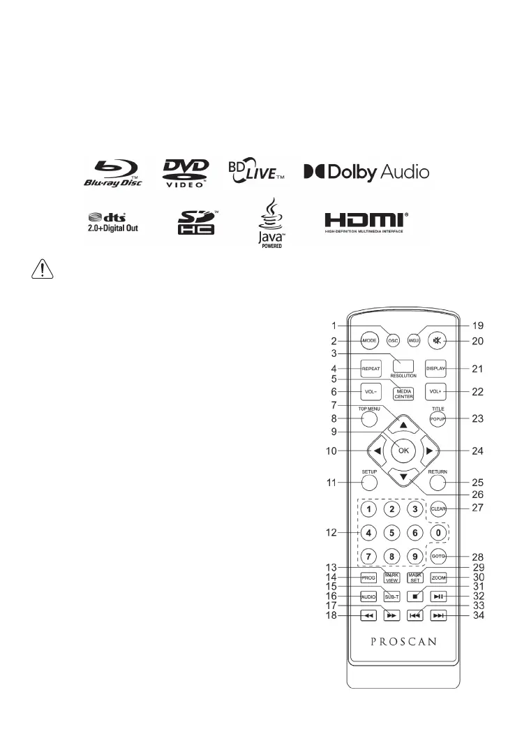 (8) TOP MENU: To open the Top menu of BD/DVD