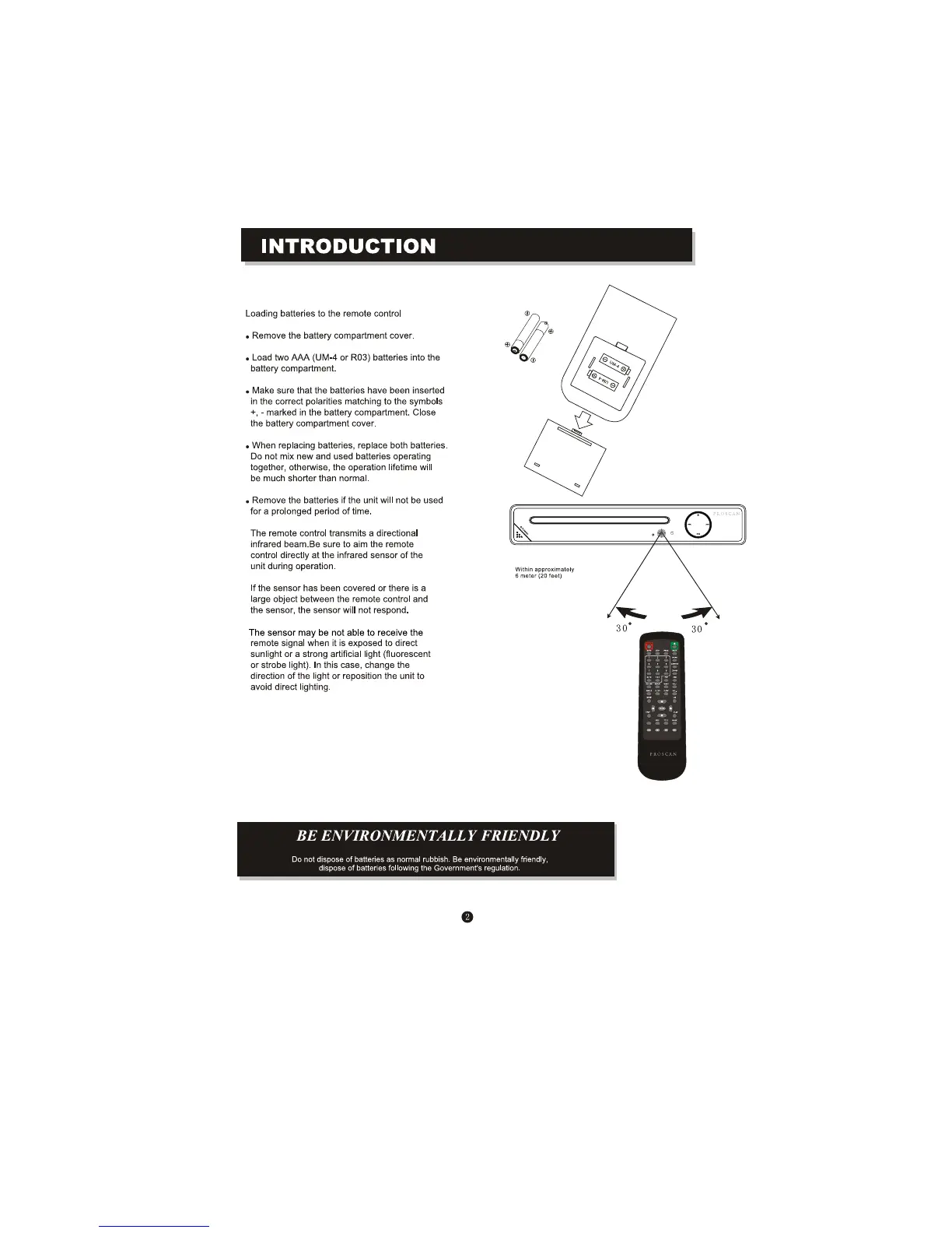 ProScan PDVD6655-PL - Introduction to Player; Remote Control Battery Installation