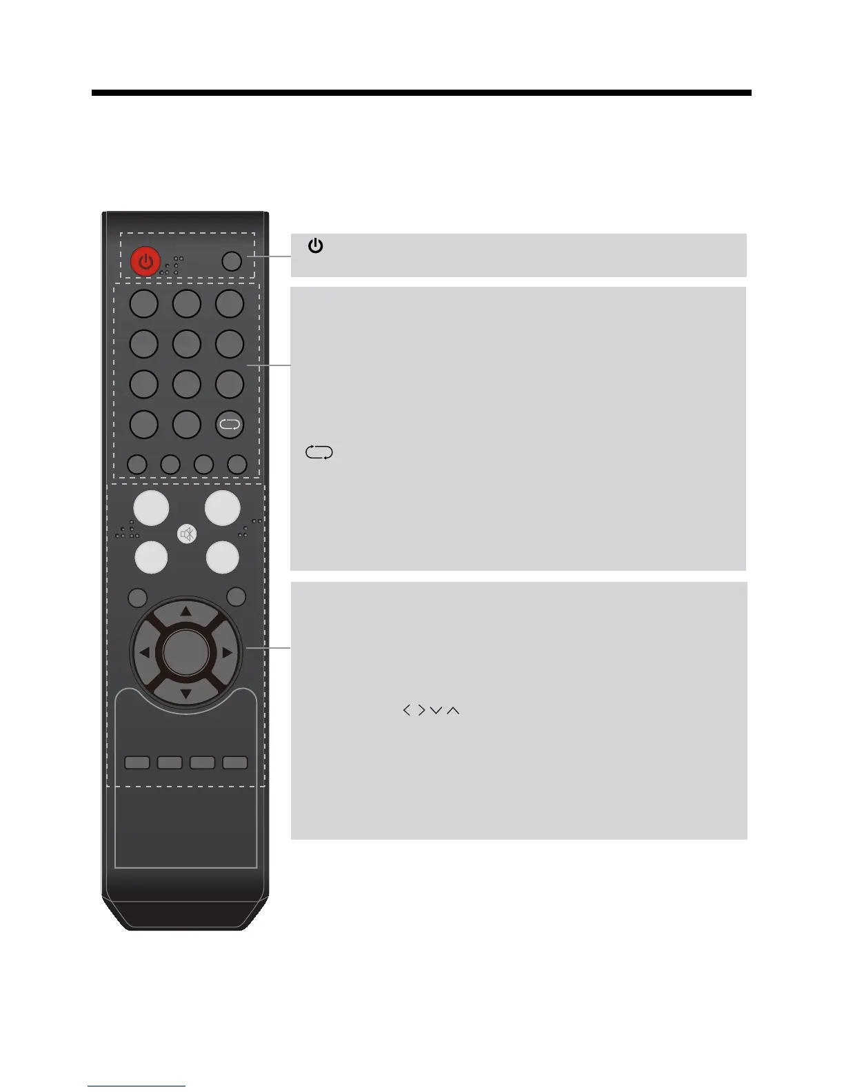 POWER(red button): Turn the TV on/standby.