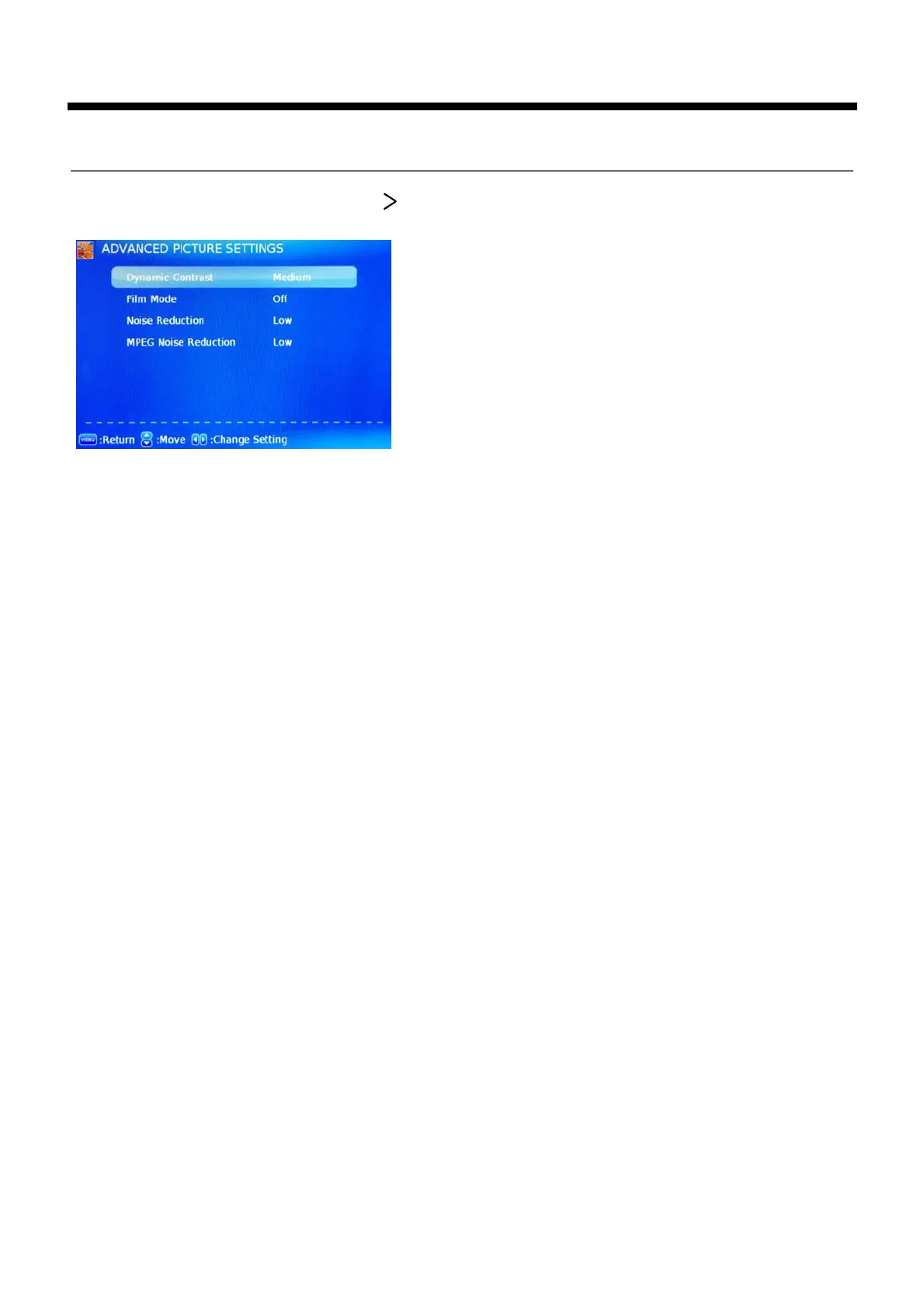 Advanced Picture Settings: Press button to enter the Advanced Picture Settings.