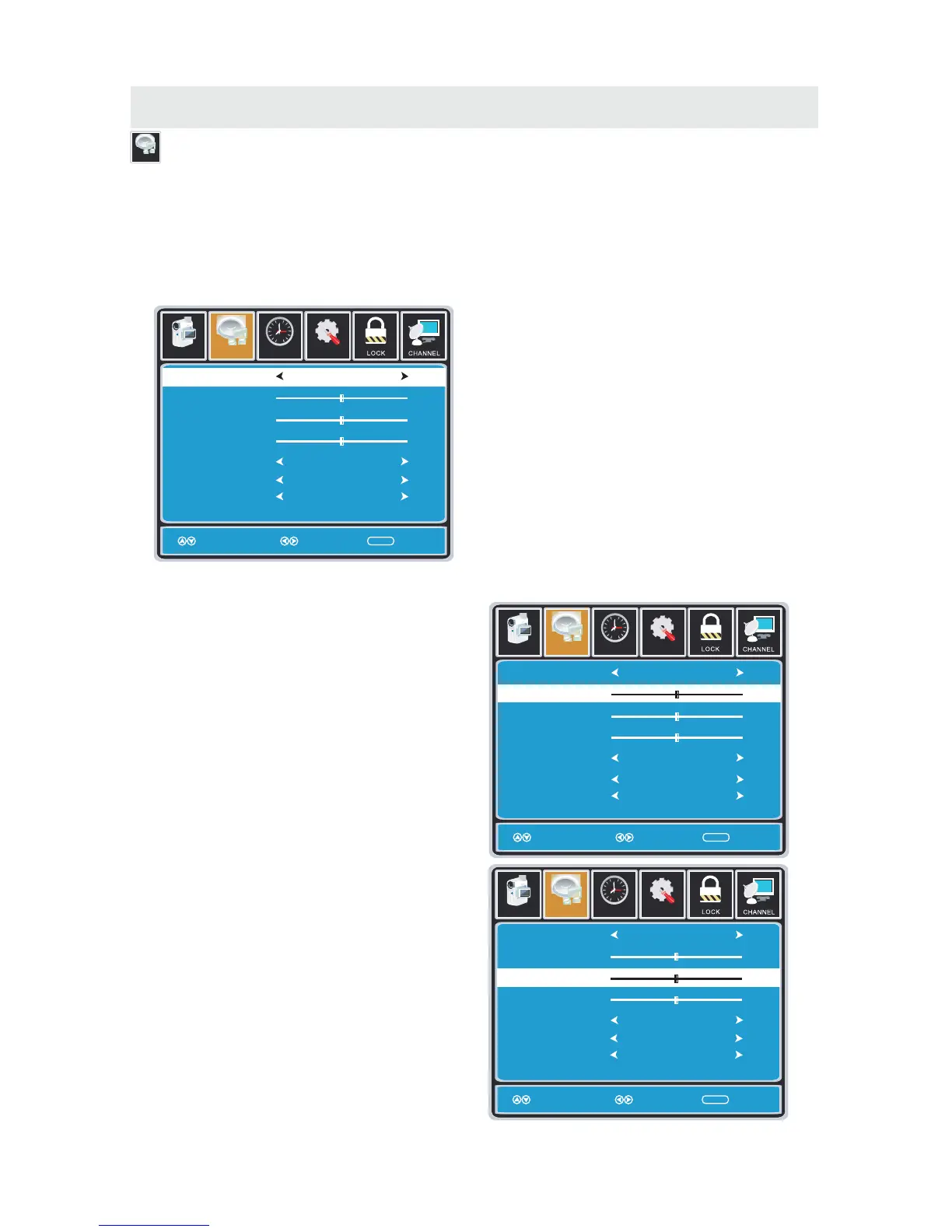 Adjustment options include bass, treble, balance, surround, SPDIF Type and audio language.
