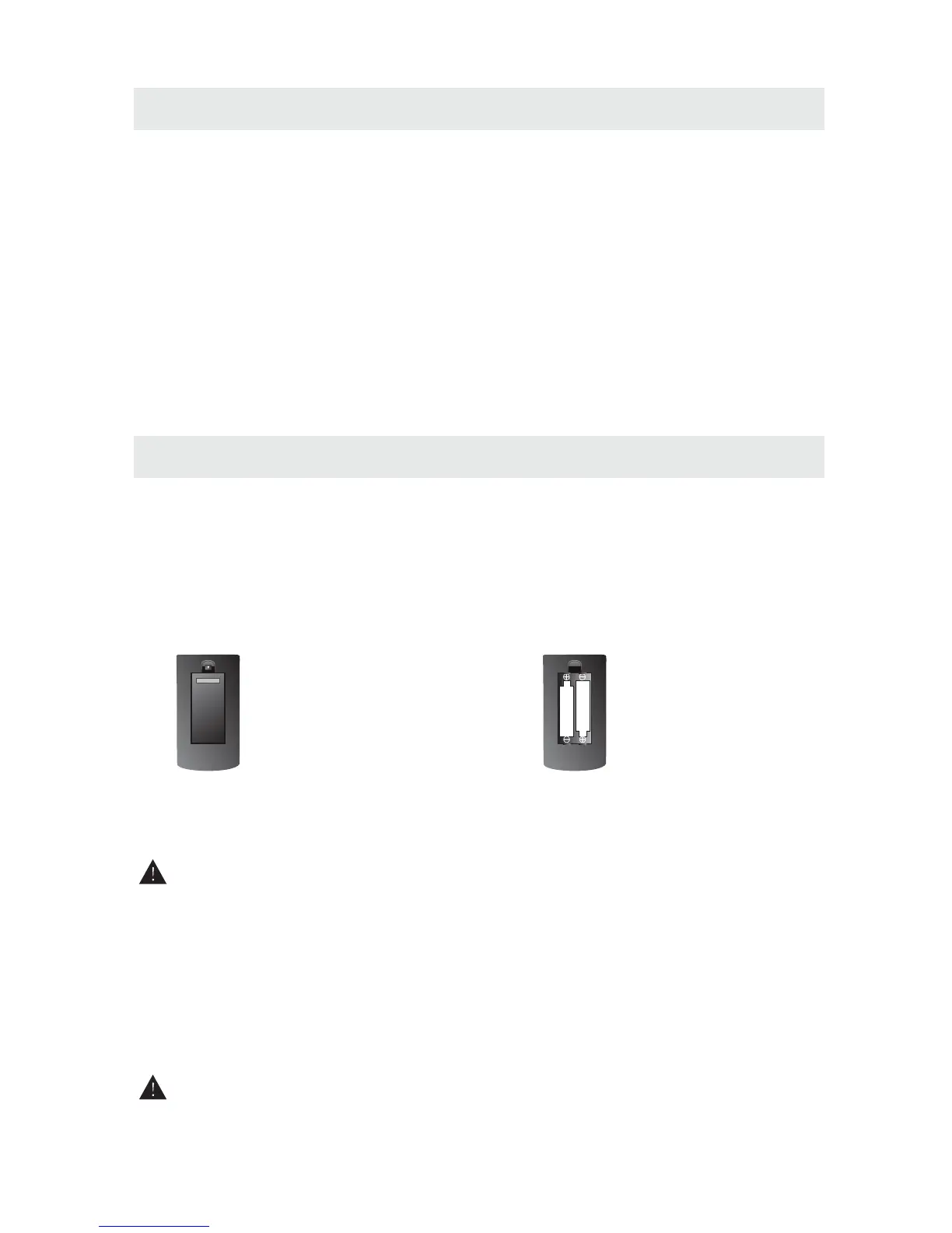 1. Open the battery door. 2. Insert 2 "AA" batteries