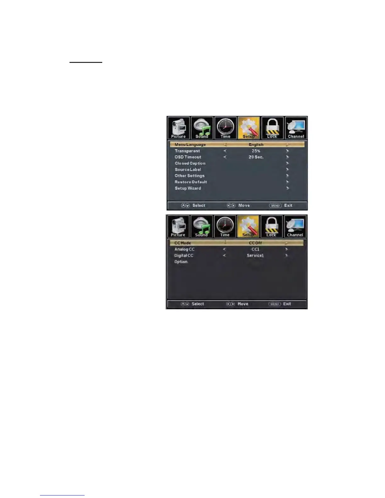 c. Press “c/d” button to select “Digital CC” the “e/f” button to adjust.
