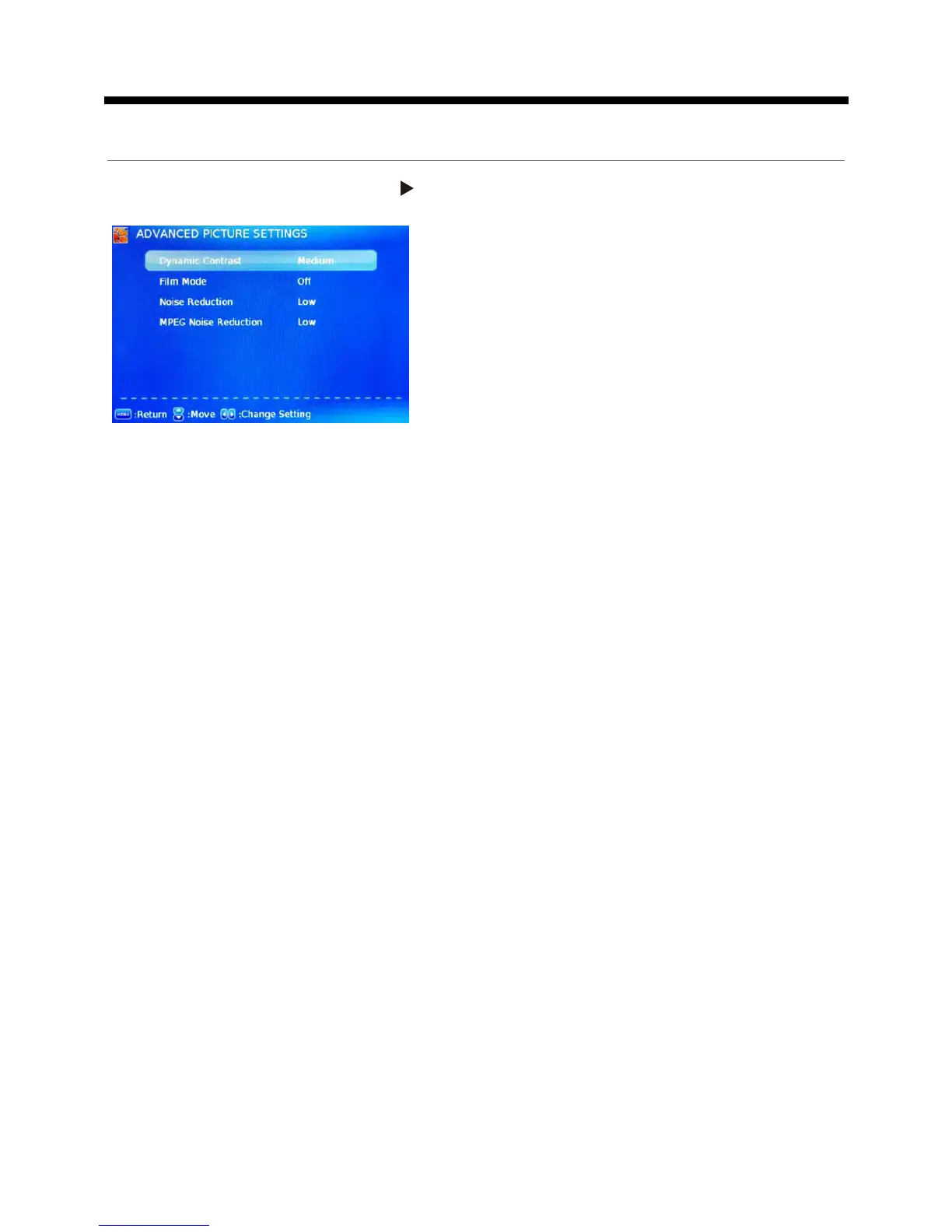 Advanced Picture Settings: Press button to enter the Advanced Picture Settings.