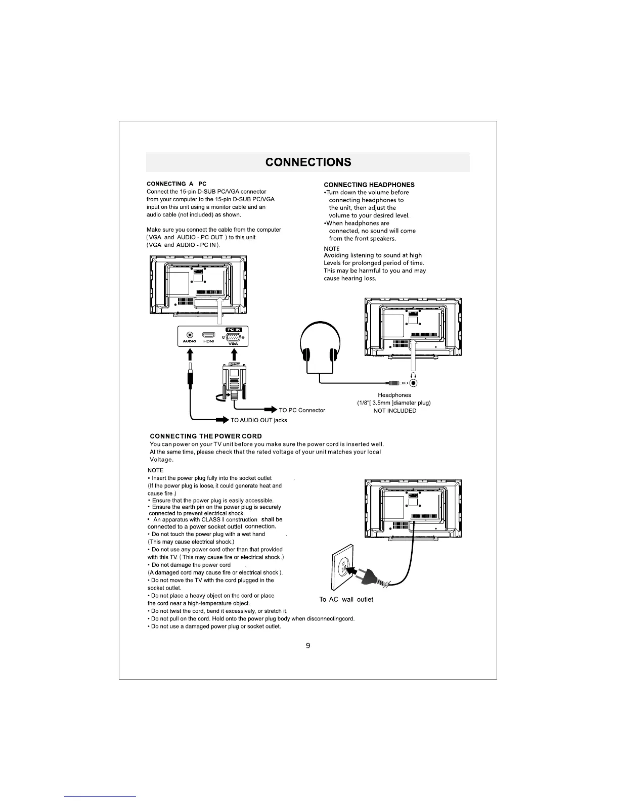 ProScan PLDED3273A-E - CONNECTIONS: ADDITIONAL INPUTS; PC, HEADPHONE, AND POWER CORD CONNECTION