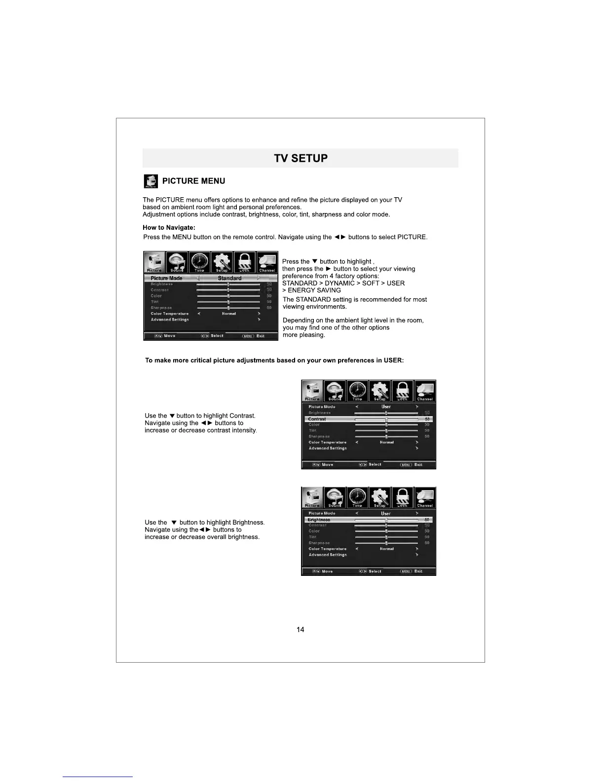 ProScan PLDED3273A-E - PICTURE MENU SETUP; PICTURE MENU ADJUSTMENTS