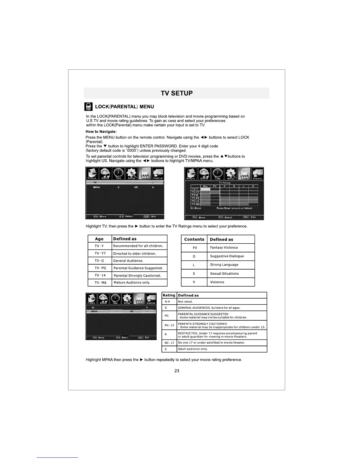 ProScan PLDED3273A-E - PARENTAL RATINGS SETUP (U.S.); U.S. TV AND MOVIE RATINGS