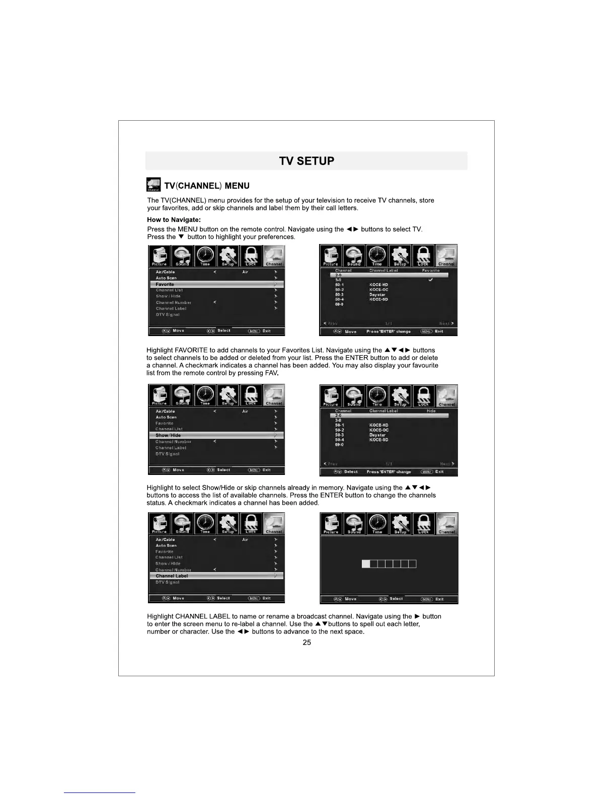 ProScan PLDED3273A-E - TV CHANNEL MENU SETUP; TV(CHANNEL) MENU OPTIONS