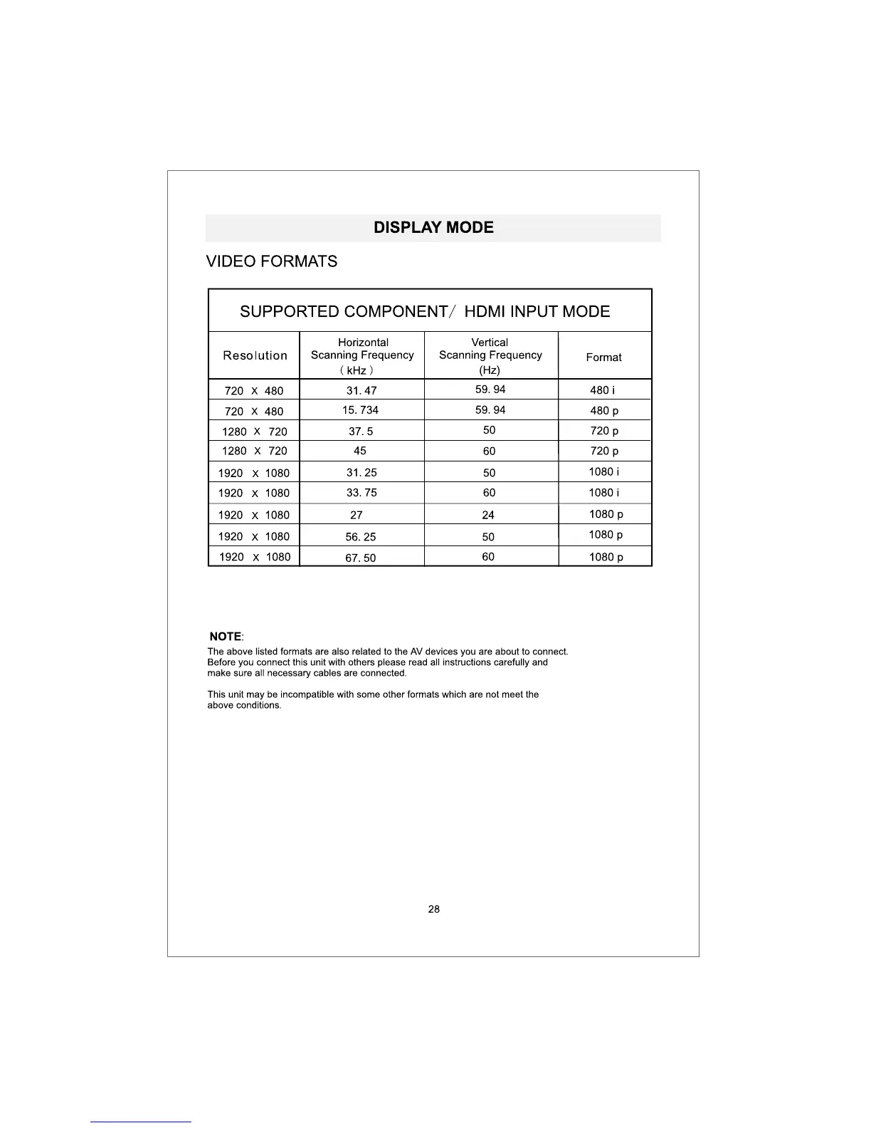 ProScan PLDED3273A-E - Video Formats; Supported Component;Hdmi Input Mode