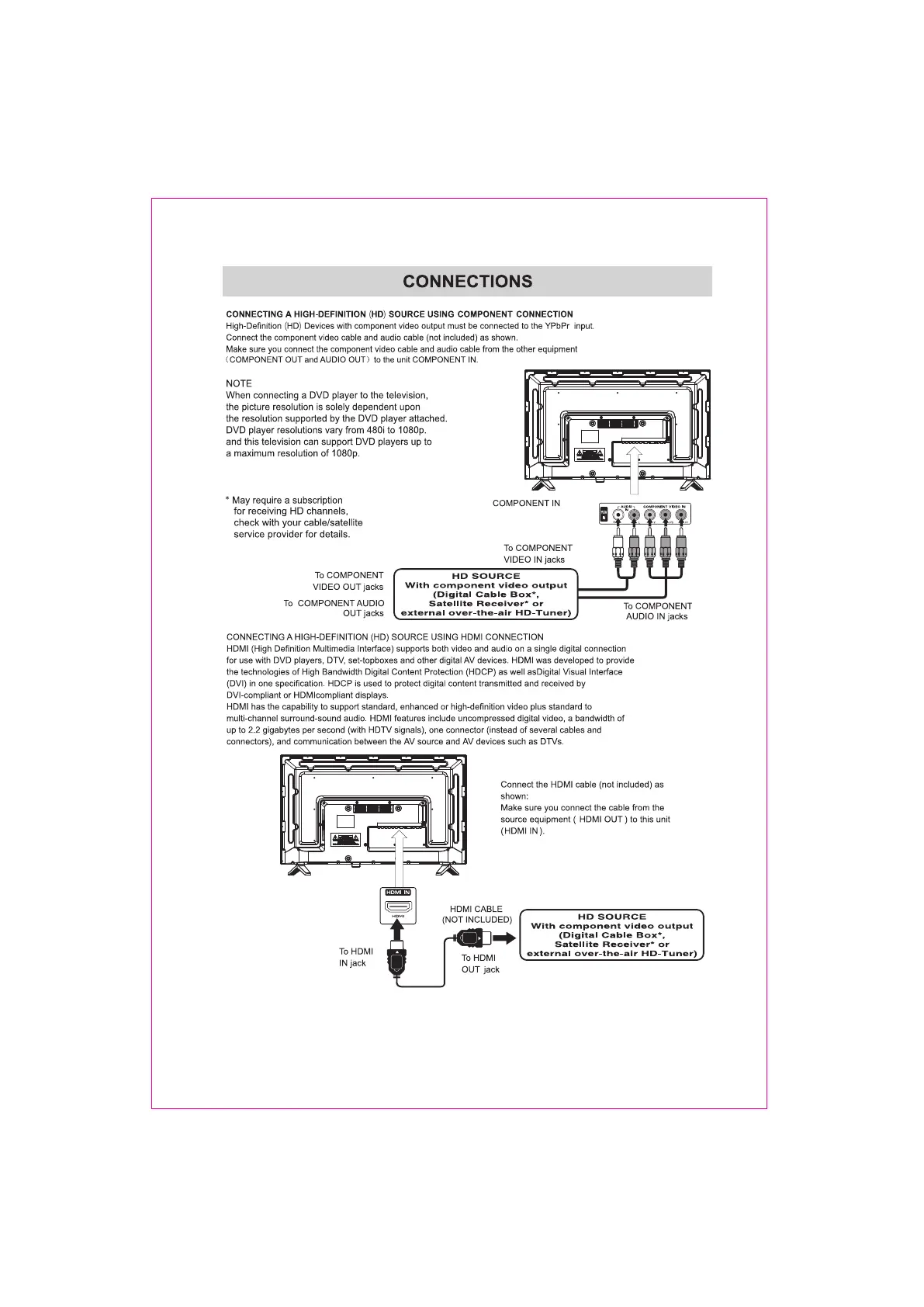 ProScan PLDED3281 - CONNECTING A HIGH-DEFINITION (HD) SOURCE USING COMPONENT CONNECTION; CONNECTING A HIGH-DEFINITION (HD) SOURCE USING HDMI CONNECTION