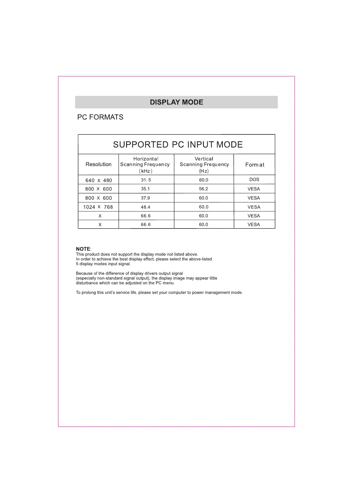 ProScan PLDED3281 - DISPLAY MODE; PC FORMATS