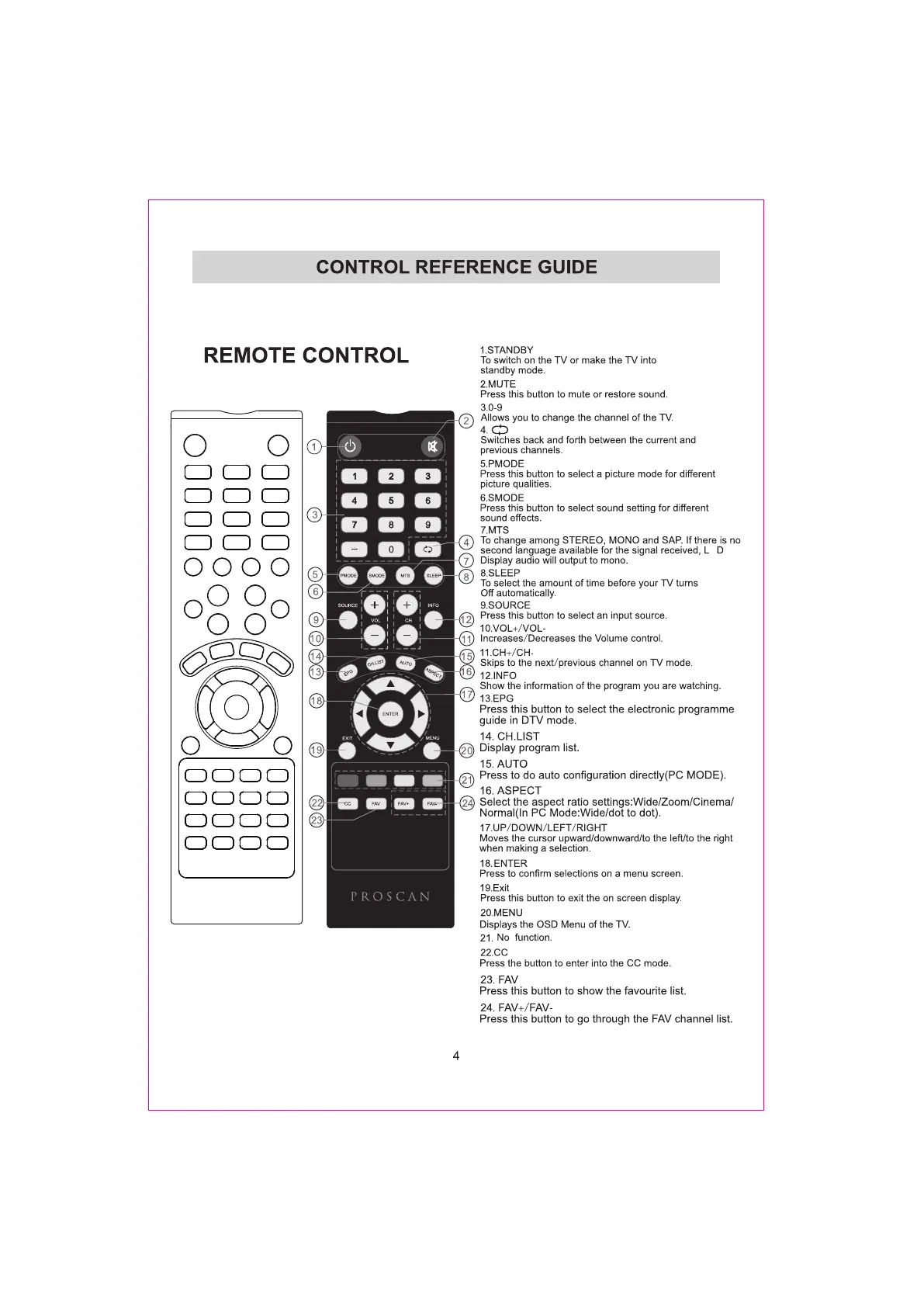 ProScan PLDED3281 - CONTROL REFERENCE GUIDE; REMOTE CONTROL