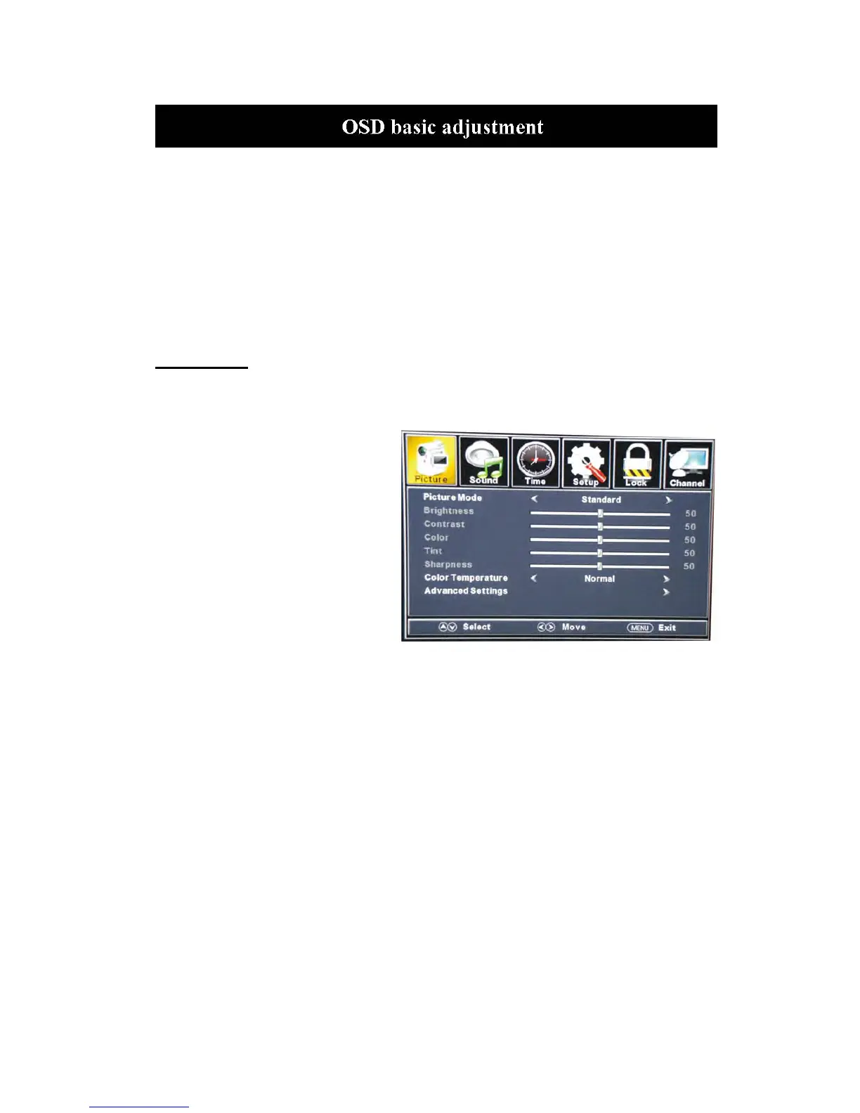 elect the type of picture, which best corresponds to your viewing. Press the “MENU”