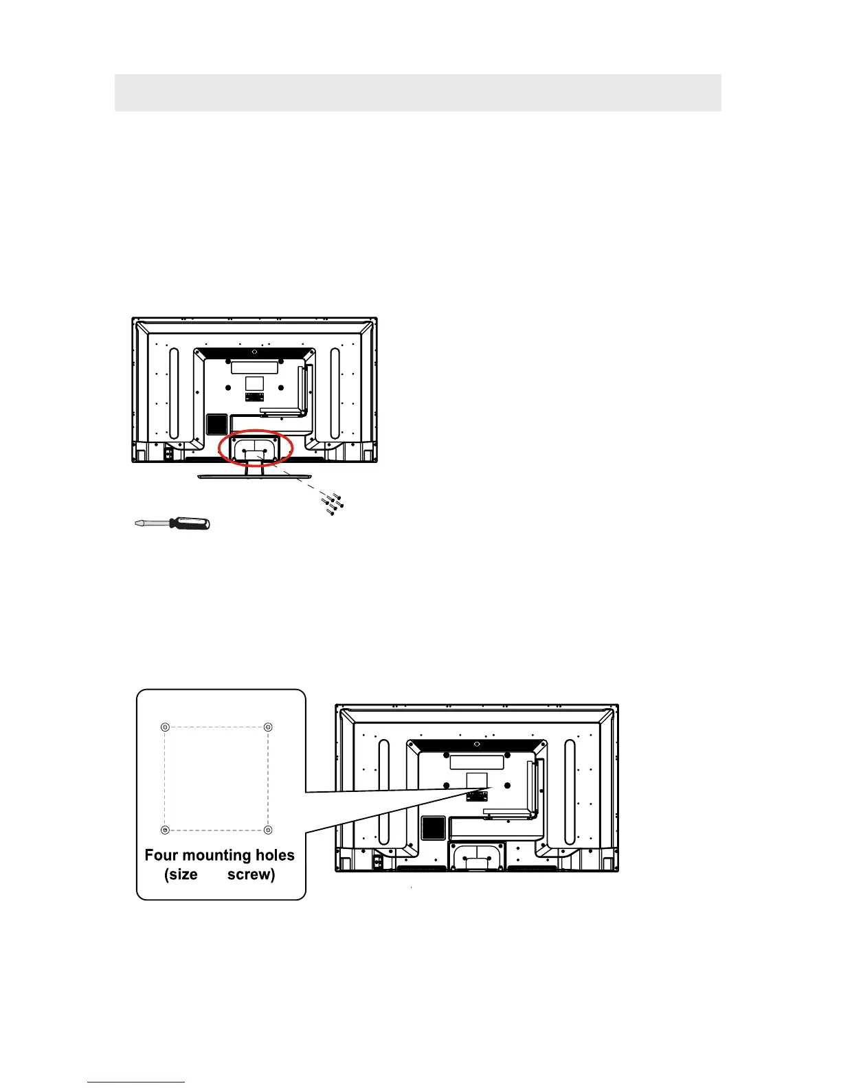 3. Pour démonter le stand de base, desserrez les vis des trous et puis mettez-le au dos pour enlever le