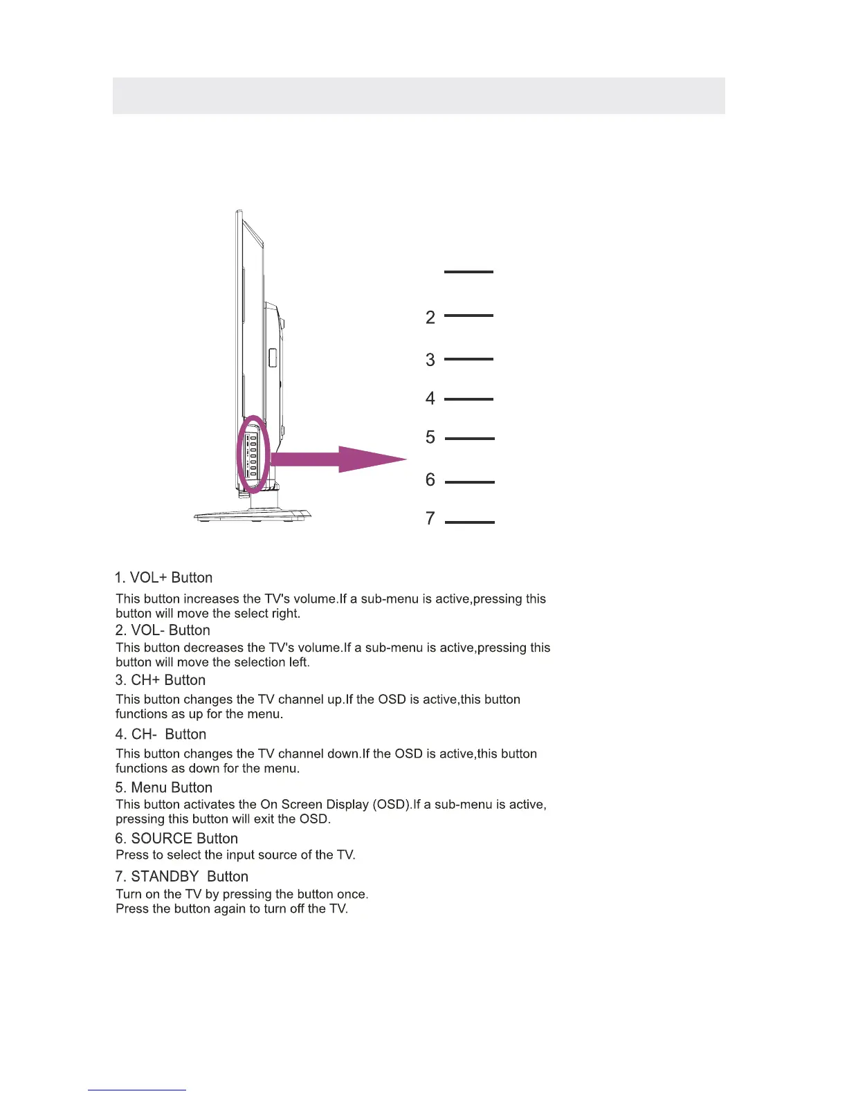 ProScan PLDED4022-UK - TV Side View Controls; Side Panel Button Functions