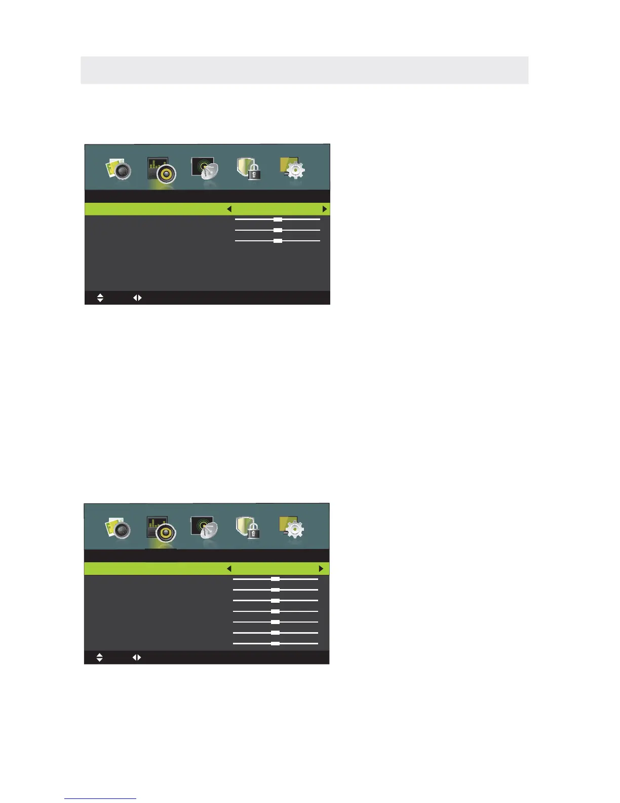Press â—„ / â–ºbutton to select SOUND in the main menu,it will highlight the first option.