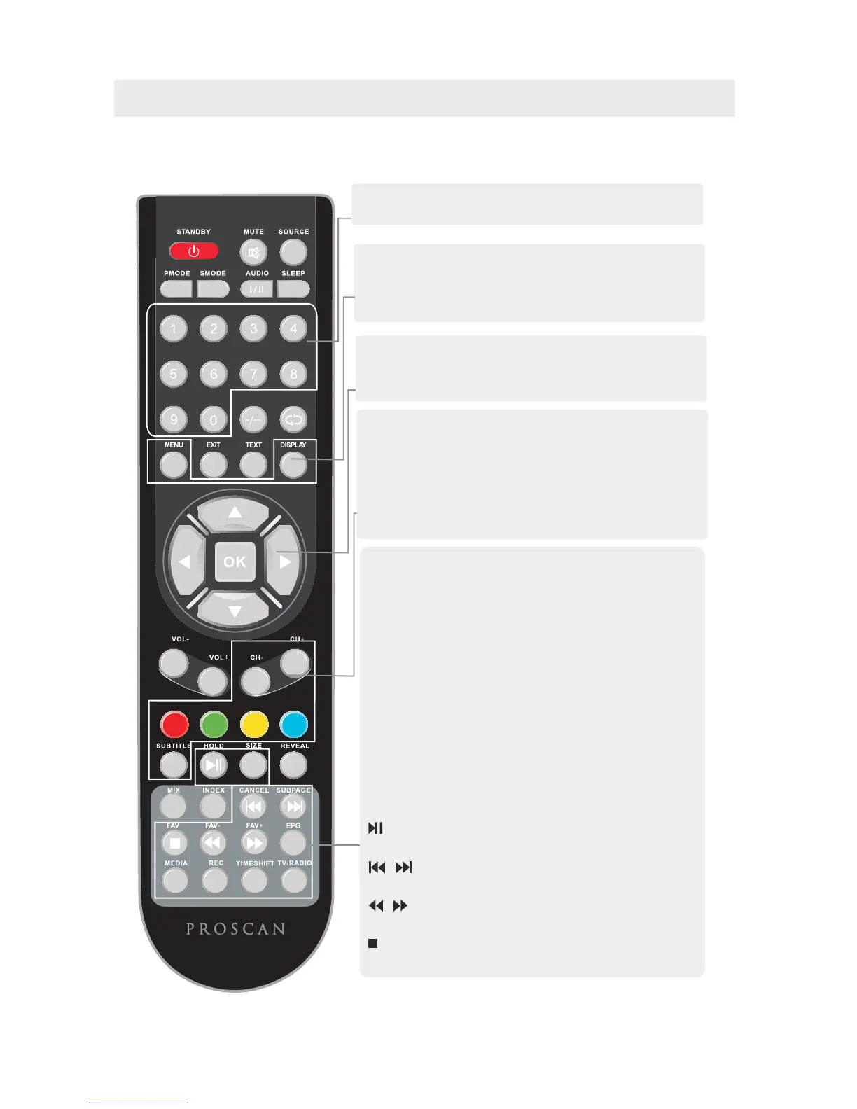 PLAY/PAUSE in TIMESHIFT and MEDIA mode.