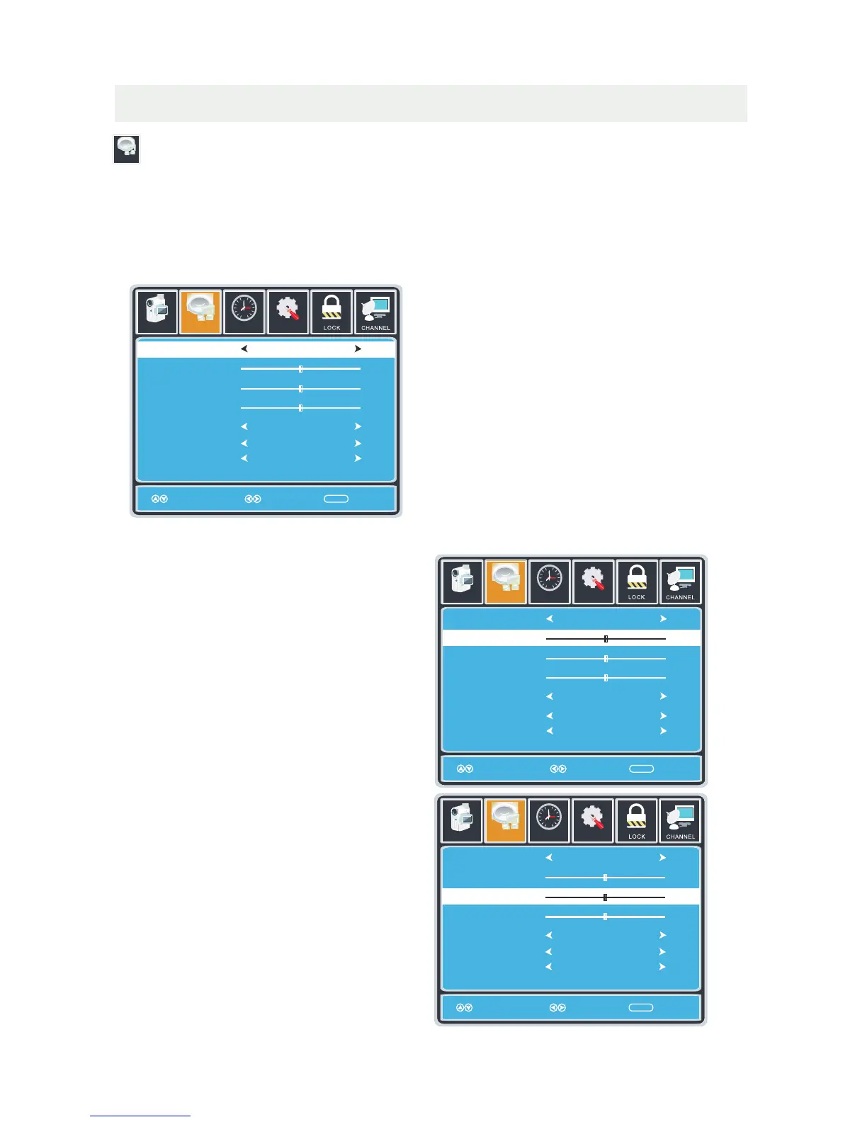 Adjustment options include bass, treble, balance, surround, SPDIF Type and audio language.