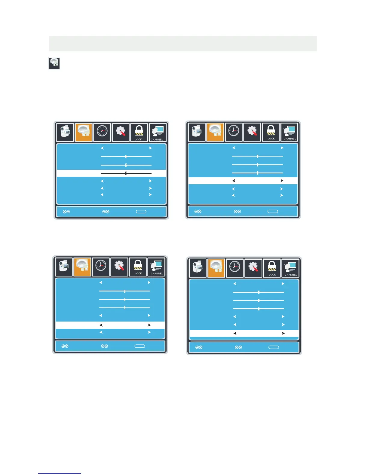 Adjustment options include bass, treble, balance, surround ,SPDIF Type and audio language.