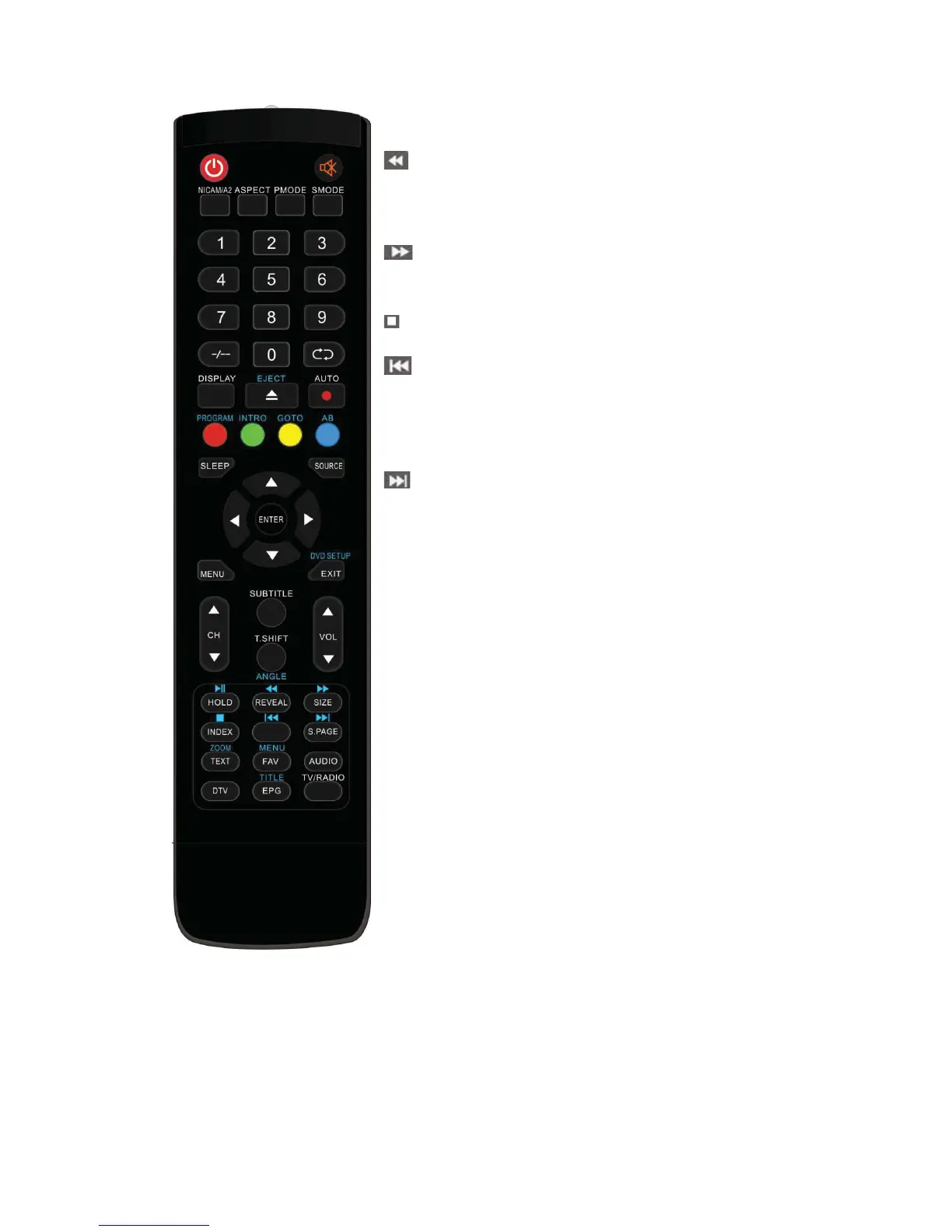 AUDIO: Press to select the DTV audio or DVD audio.