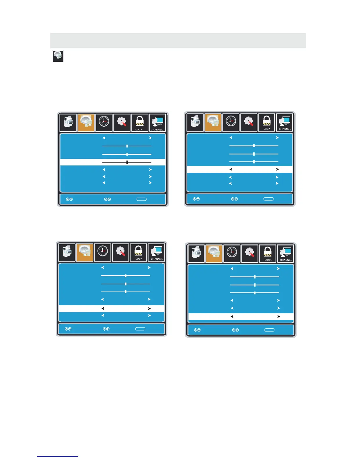 Adjustment options include bass, treble, balance, surround ,SPDIF Type and audio language.