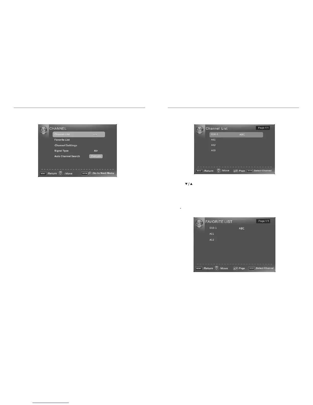 Channel Setting Set the favorite channels, skipped channels, label of channels,