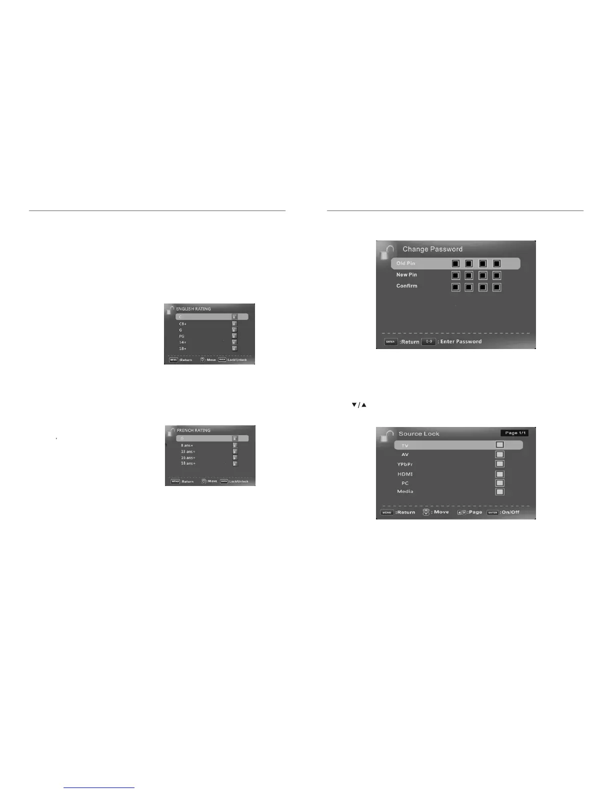 Press to select the source you want to lock, then press ENTER to set it to lock. If
