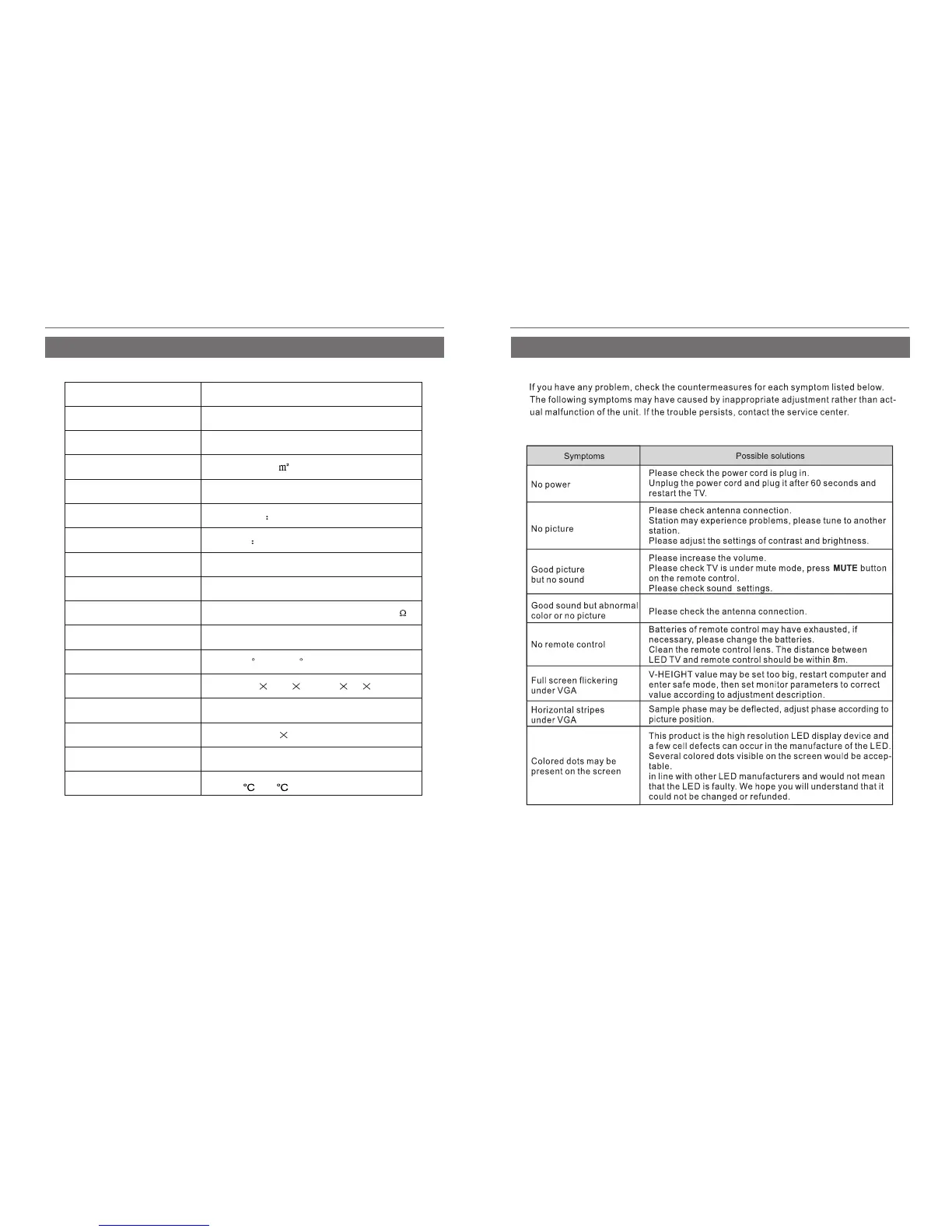 ProScan PLED 2243B - Specifications; Model Specifications; Troubleshooting; Common Symptoms and Solutions