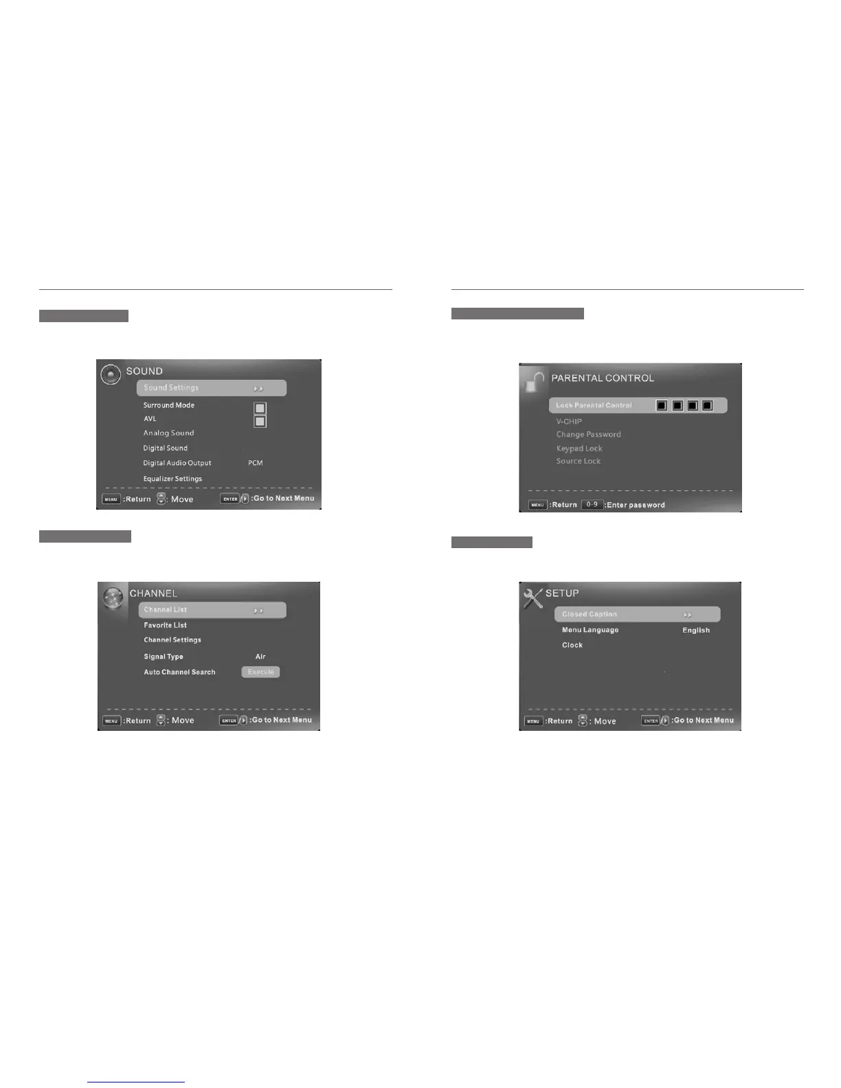 Select closed caption options, language and time. For details, see page 30 to 32.
